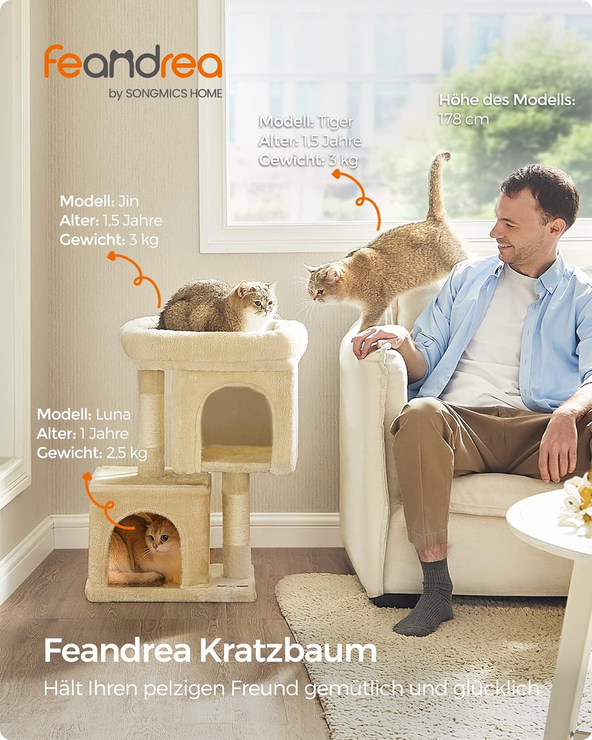• [Klettern, kratzen, entspannen – alles in einem] Das mehrstufige Design erleichtert das Auf- und Absteigen. 2 Sisalstämme befriedigen den natürlichen Kratzinstinkt Ihrer Fellnasen. Die Plattform oben ist ideal zum Beobachten. 2 Höhlen sind bequem