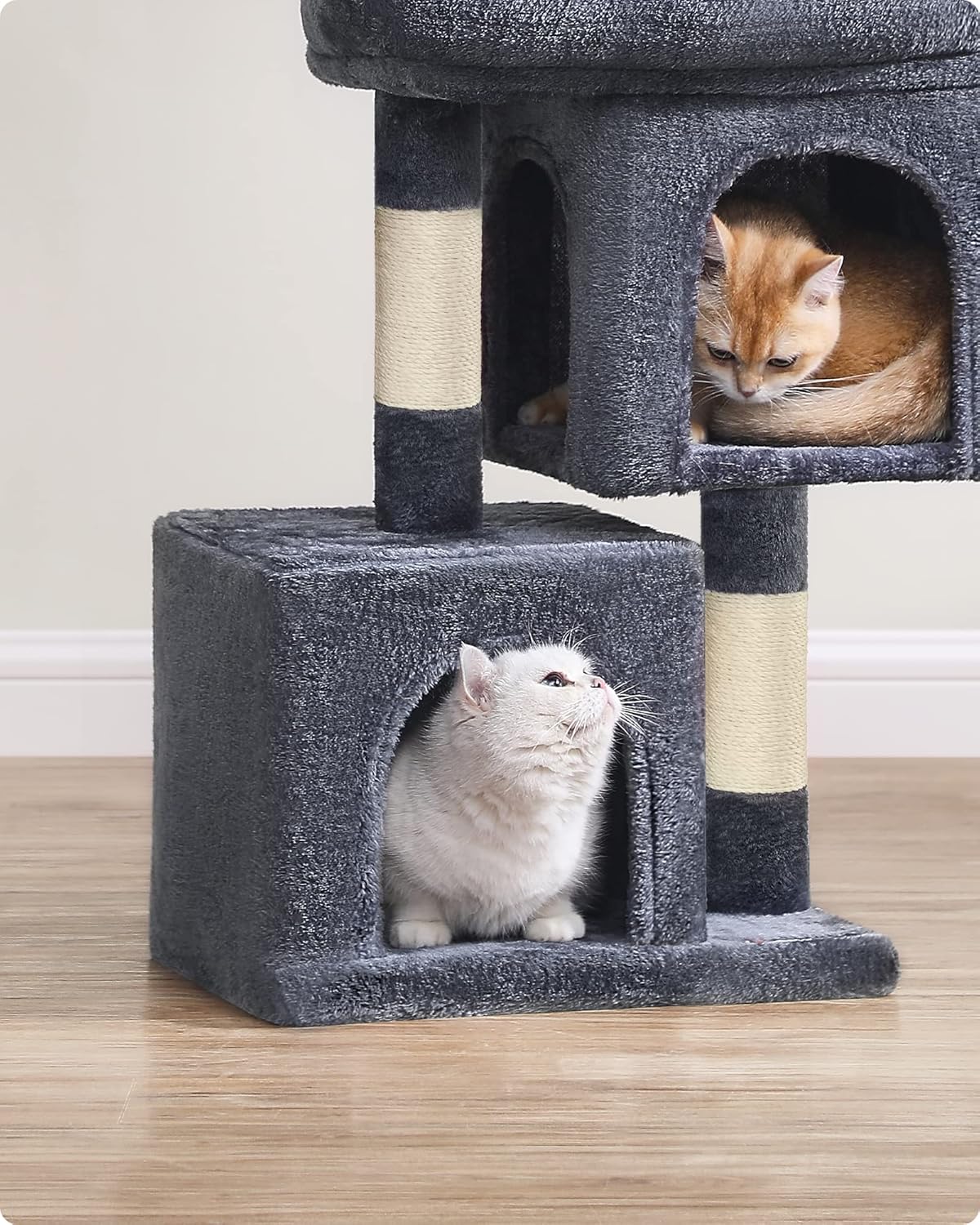 - [Klettern, kratzen, entspannen – alles in einem] Das mehrstufige Design erleichtert das Auf- und Absteigen. 2 Sisalstämme befriedigen den natürlichen Kratzinstinkt Ihrer Fellnasen. Die Plattform oben ist ideal zum Beobachten. 2 Höhlen sind bequem