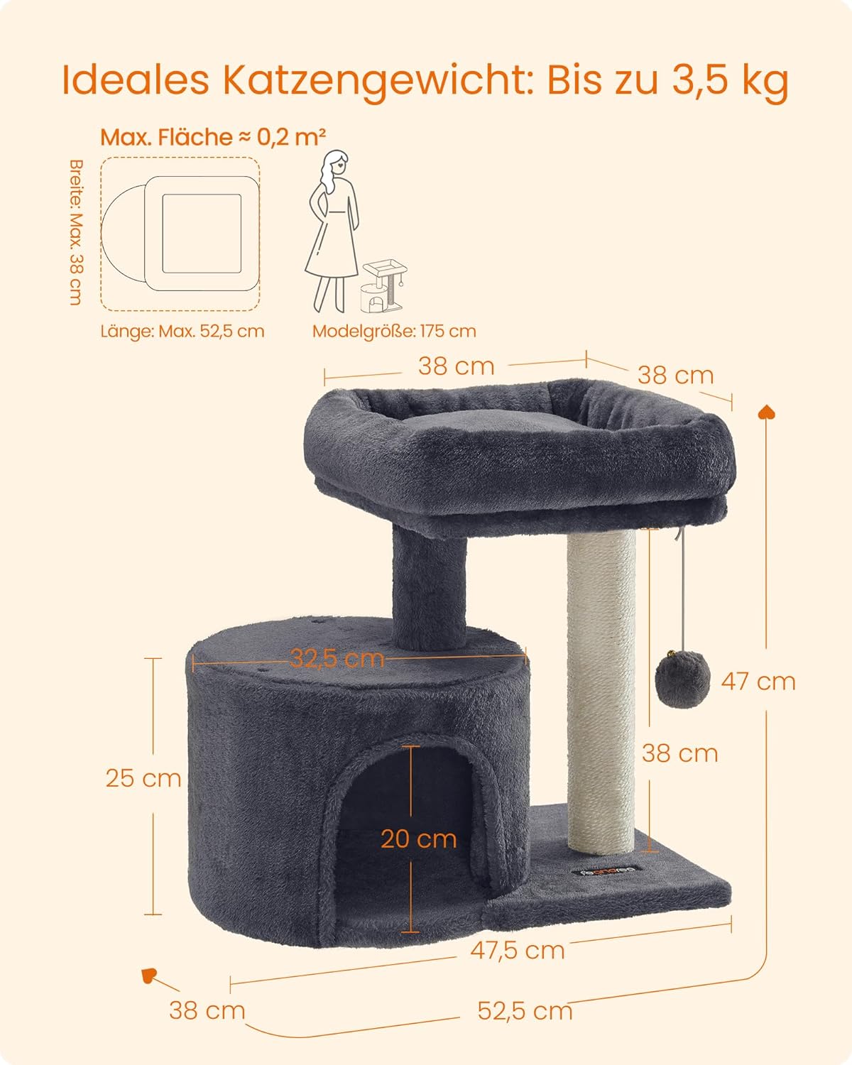 - STABILITÄT SCHAFFT VERTRAUEN: Dieser kleine und dennoch stabile Kratzbaum wurde aus hochwertigem Holzspan gefertigt und verfügt über eine verstärkte Bodenplatte. So ist er stets ein grossartiger Wegbegleiter, während Ihr pelziger Freund wächst und