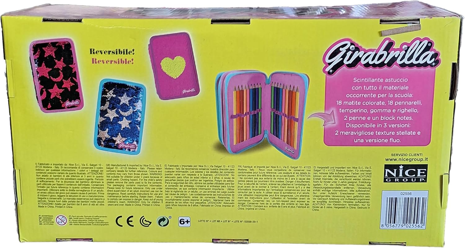- Inhalt: 18 Buntstifte, 18 Marker, Spitzer, Radiergummi und Lineal, 2 Stifte und ein Notizblock