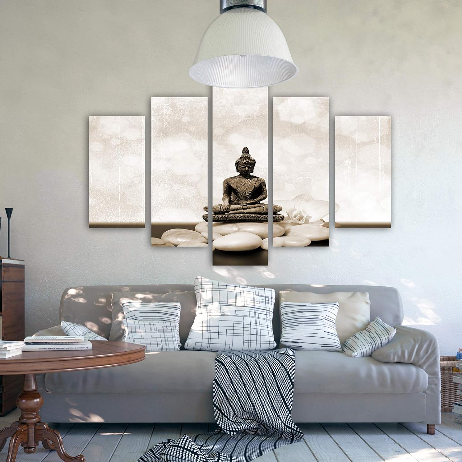 Feeby Bilder Buddha 300x140 cm Leinwandbild 5 Teilig XXL Kunstdruck modern relax braun Leinwandbild