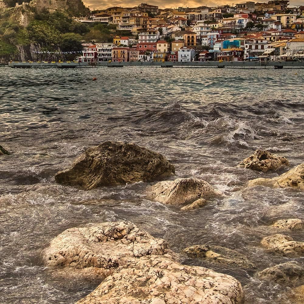 Feeby Bilder Modern Landschaft 5 Teilig Design Art See Städtchen braun 100x70 cm Deco panel 100x70 c