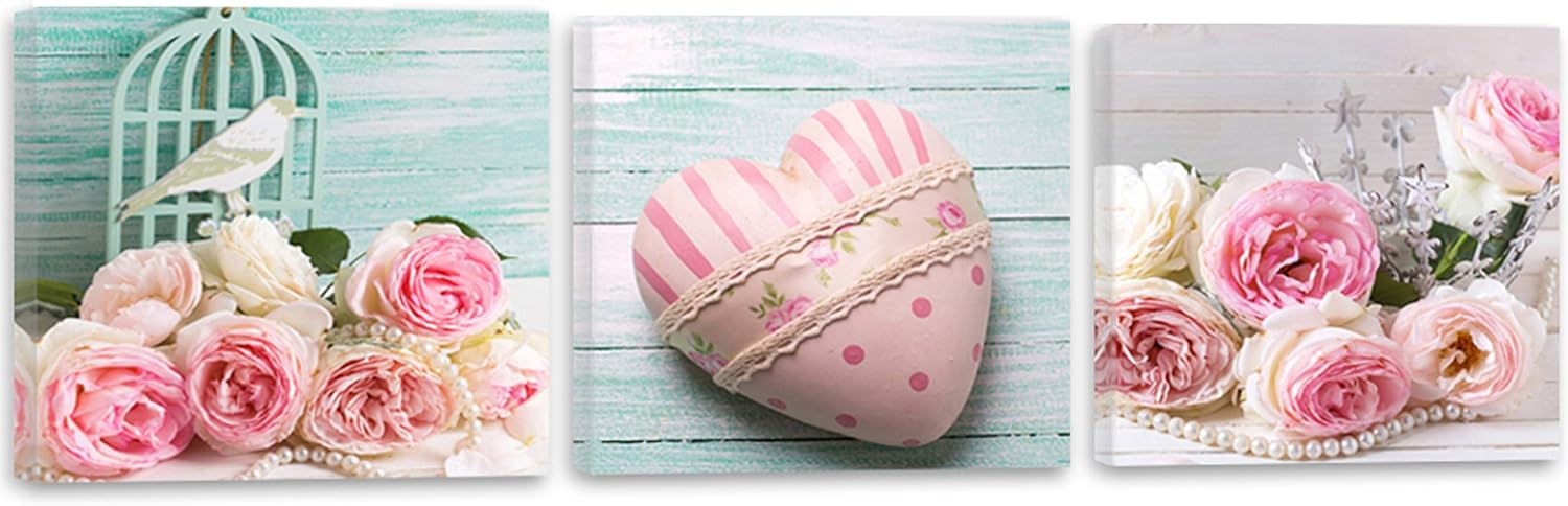 Feeby Bilder 3 Teile Herz Blumen 180x60 cm Wohnzimmer Schlafzimmer Büro Flur Küche Wandbilder Modern