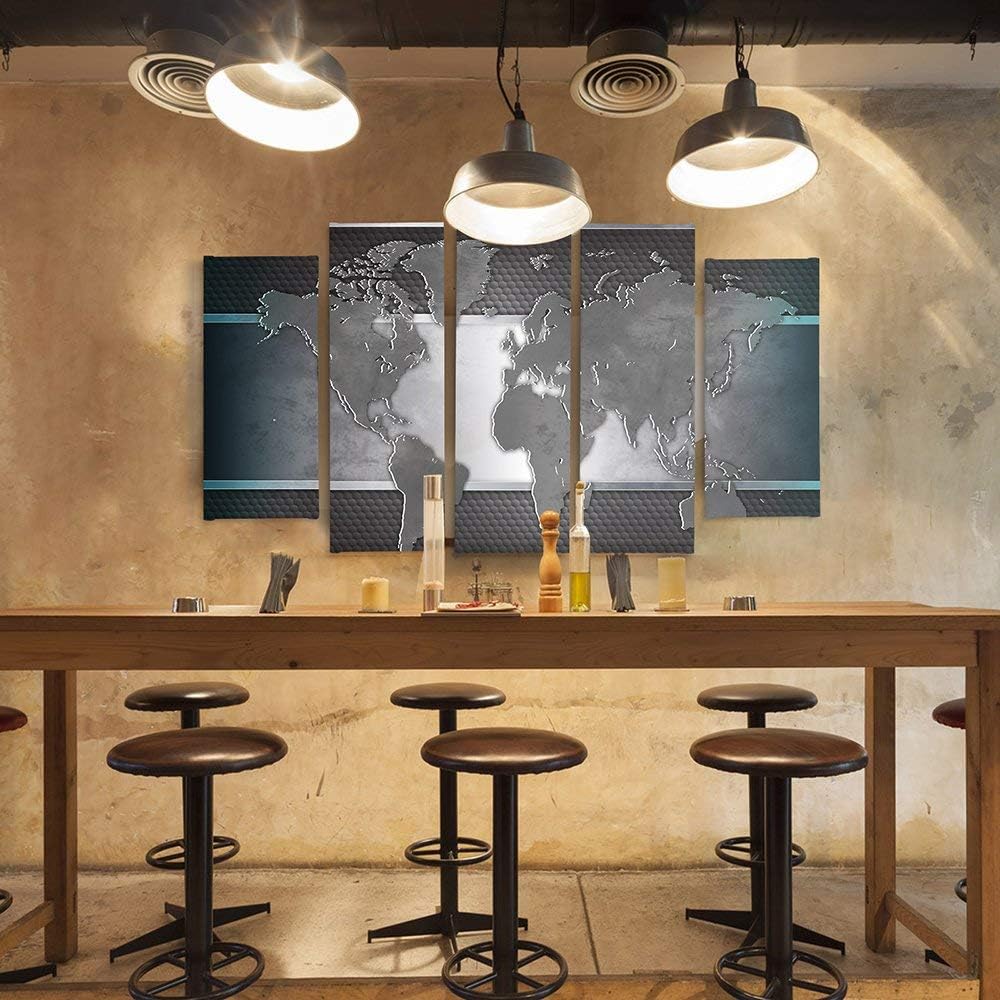 Feeby Frames, Leinwandbild Bilder Wand Bild - 5 Teile - Wandbilder Kunstdruck (WELTKARTE, GRAU) 150x