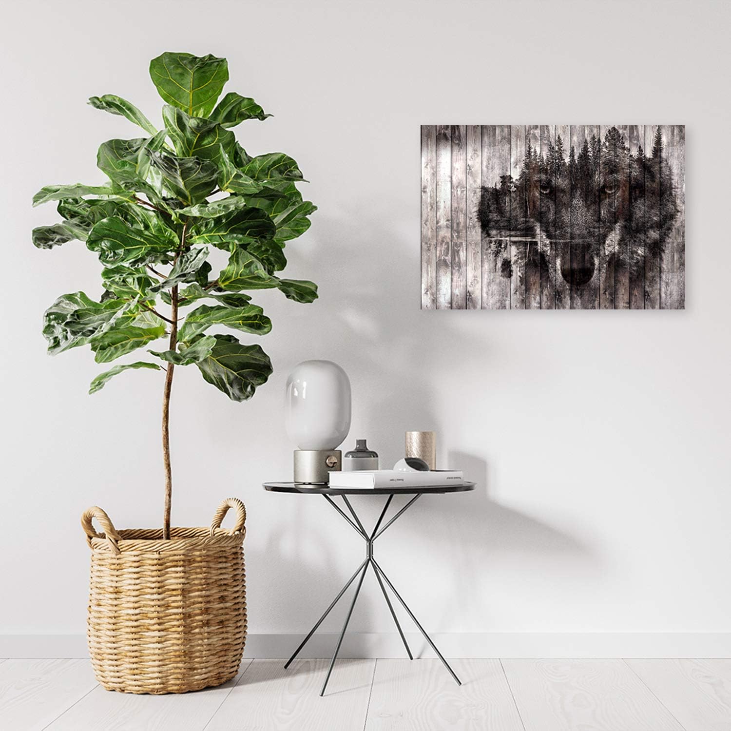 Feeby Bilder Wolf Holz Wald im Nebel XXL 120x80 cm 1Teilig Wohnzimmer Schlafzimmer Wandbilder Leinwa
