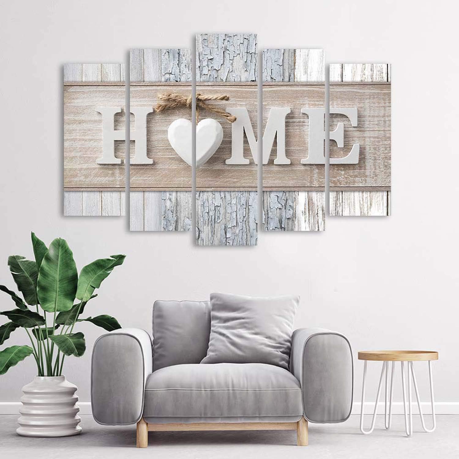 Feeby Wanddeko 5 teile Haus 150x100 cm Bilder modern Wanddekoration Herz Wohnzimmer Küche Grau Deko
