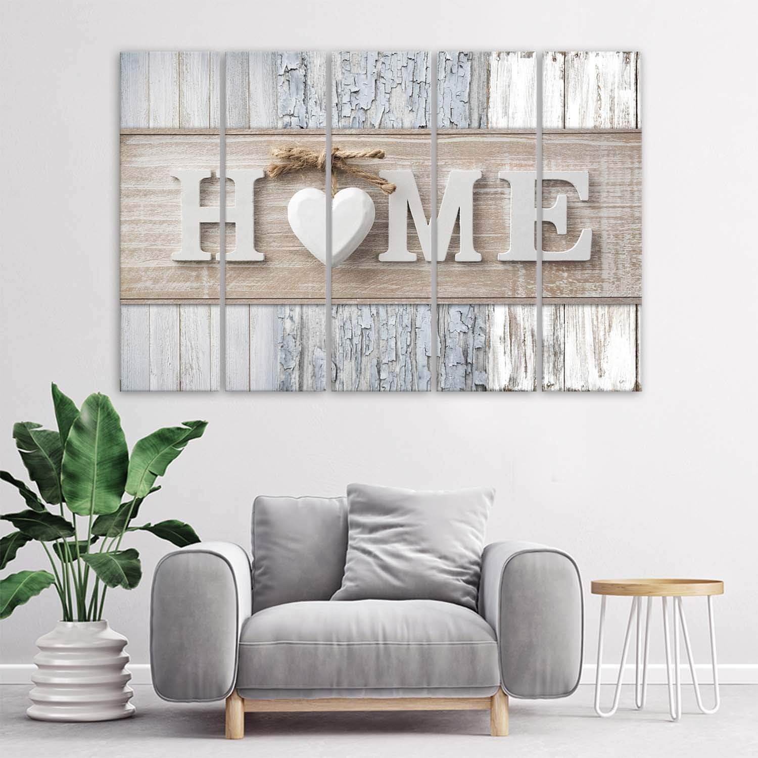 Feeby Wanddeko 5 teile Haus 150x100 cm Bilder modern Wanddekoration Herz Wohnzimmer Küche Grau Deko