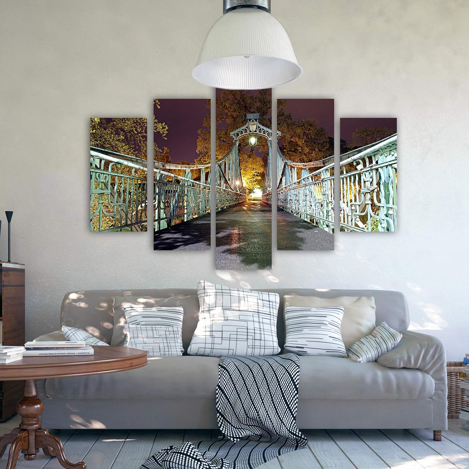 Feeby Wanddeko XXL Brücke Leinwandbild 5 Teilig Architektur Abend Lichter grün 100x70 cm Leinwandbil