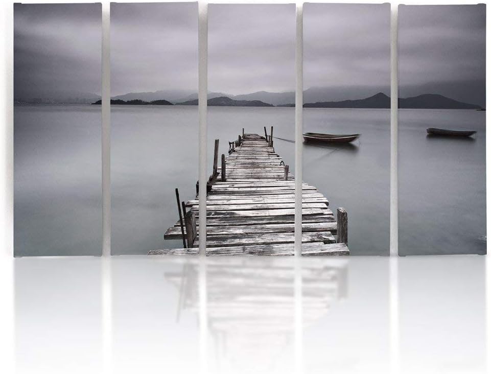 Feeby Frames, Leinwandbild Bilder Wand Bild - 5 Teile - Wandbilder Kunstdruck (BRÜCKE, SEE, GRAU) 15