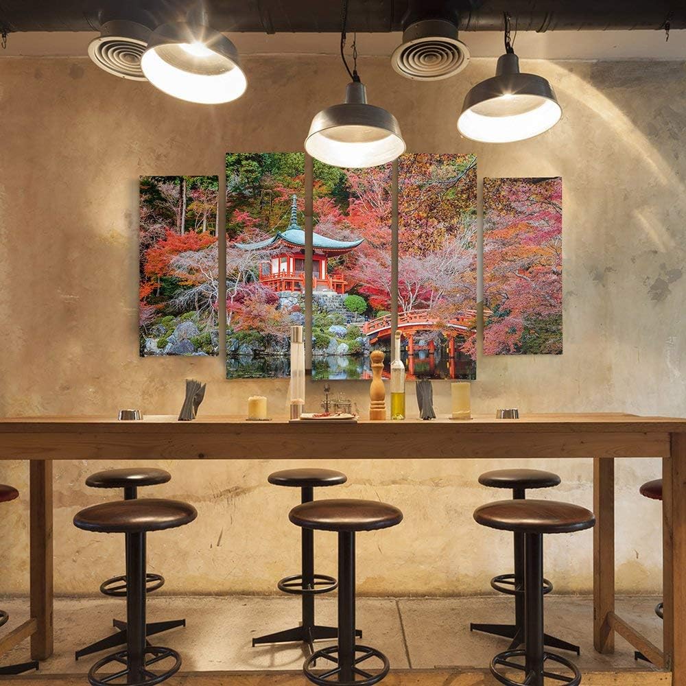 Feeby Frames, Leinwandbild Bilder Wand Bild - 5 Teile - Wandbilder Kunstdruck (JAPANISCHER GARTEN, R