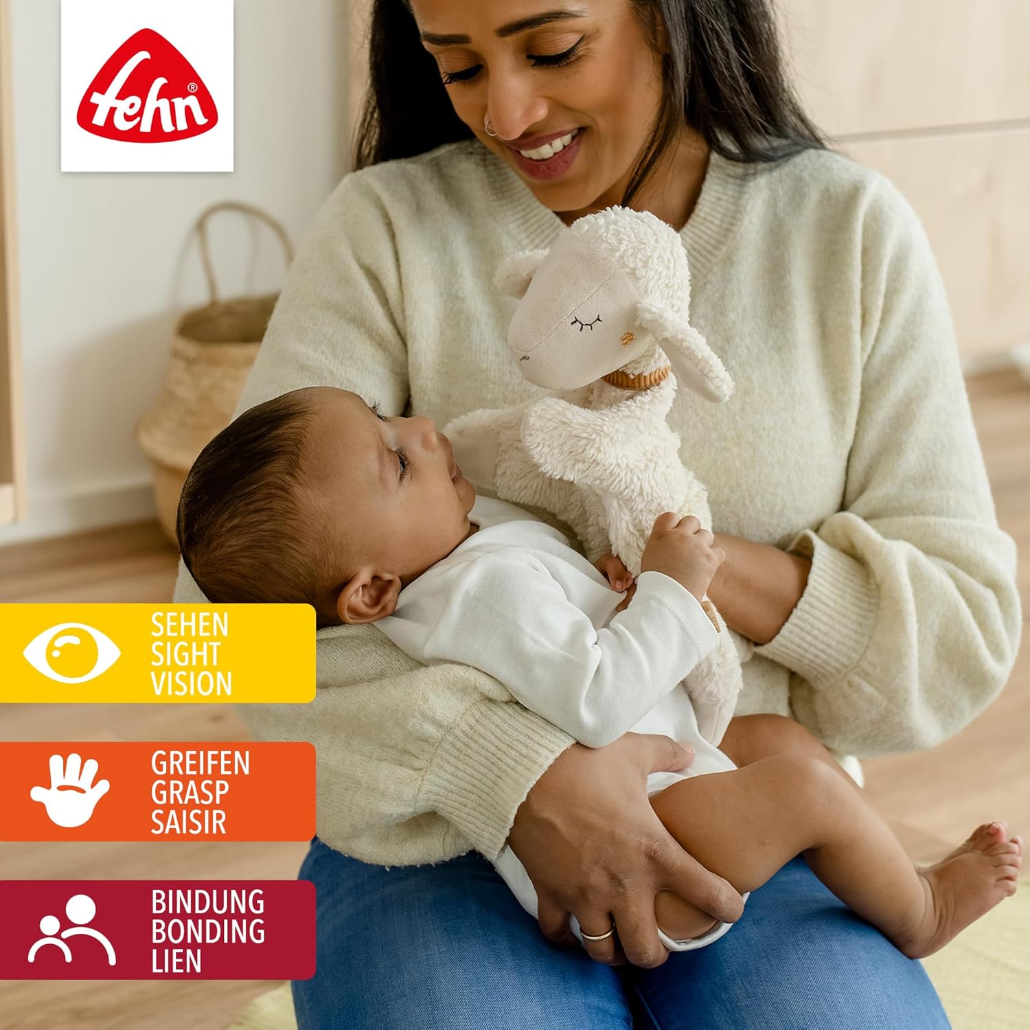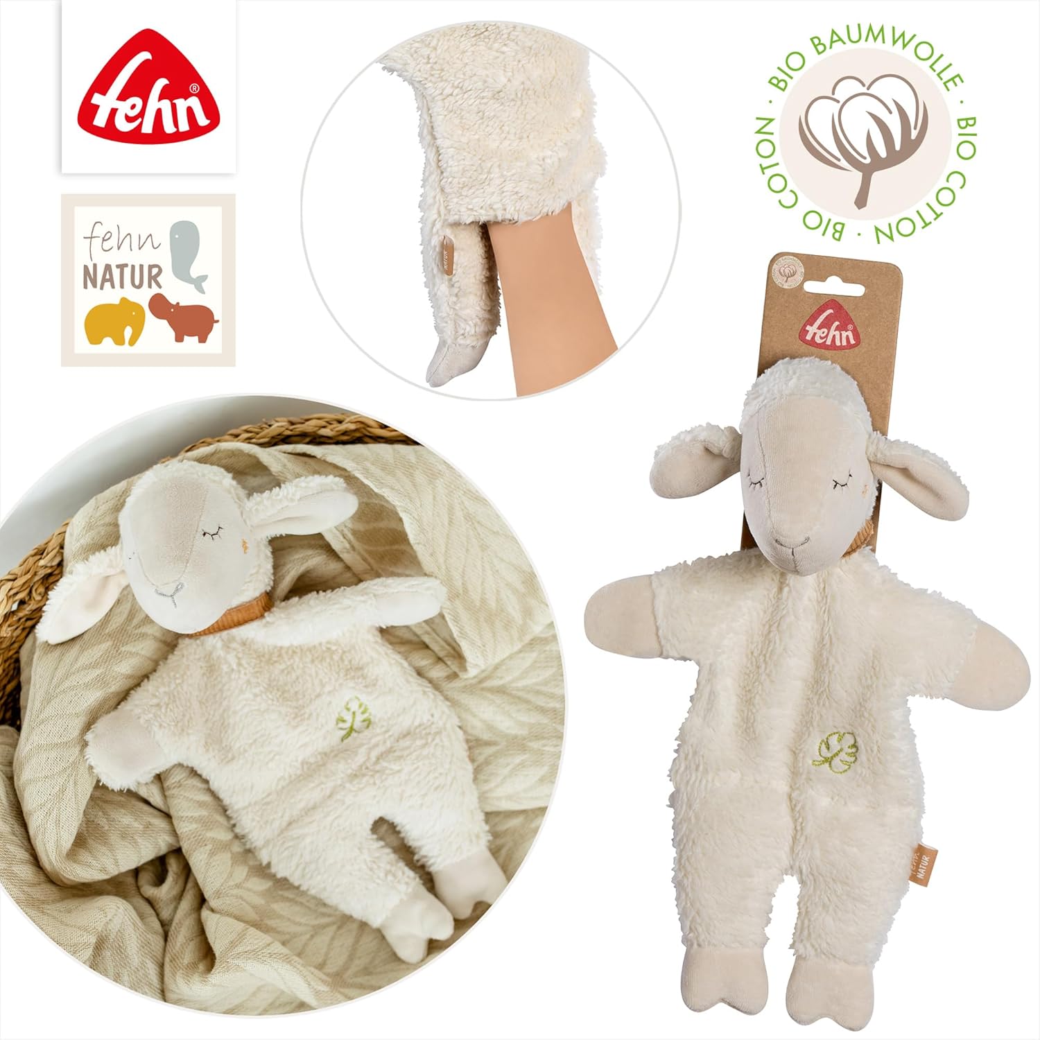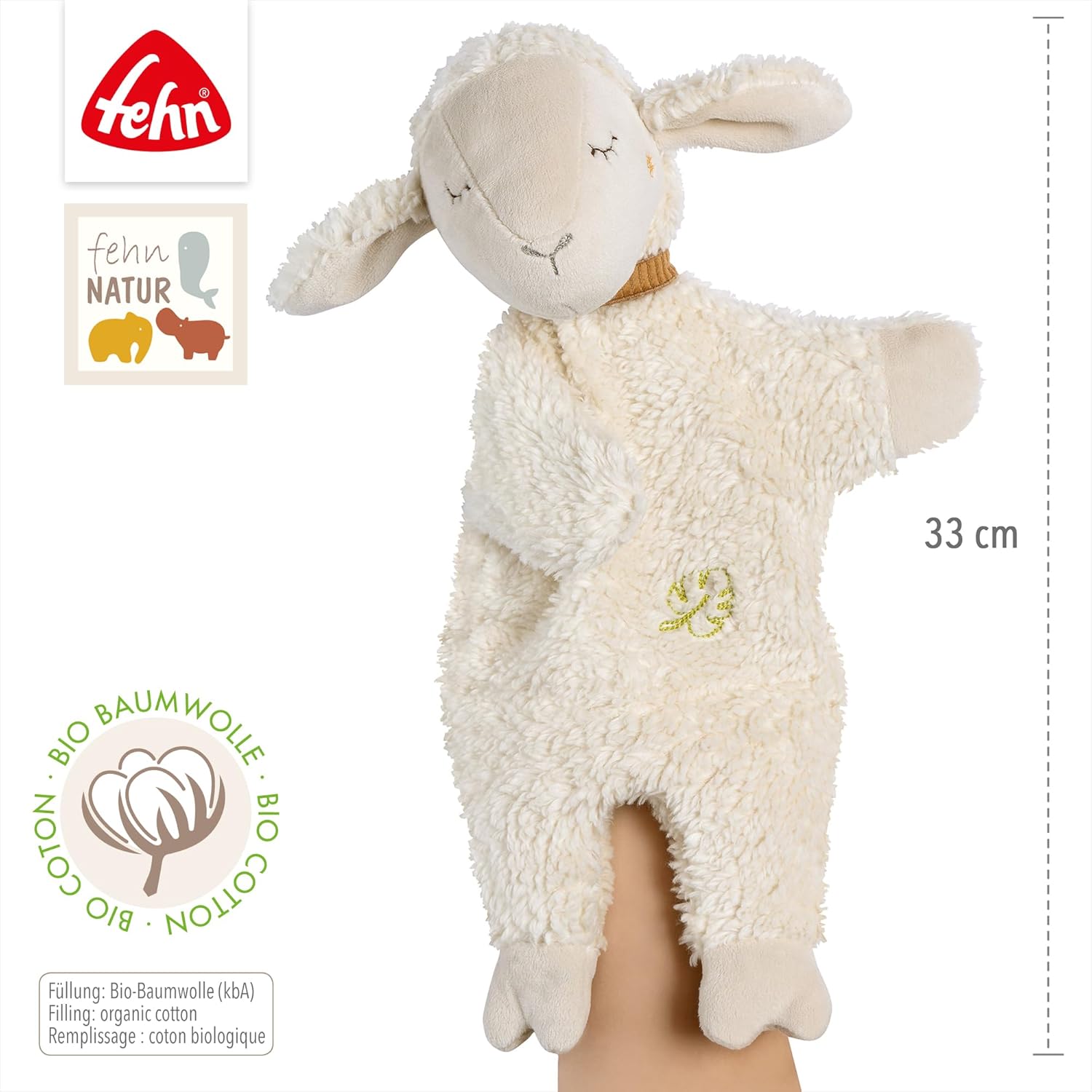 Fehn Handpuppe Schaf NATUR – Spielkamerad, Einschlafhilfe, Handpuppe & Stofftier-Schnuffeltuch mit B