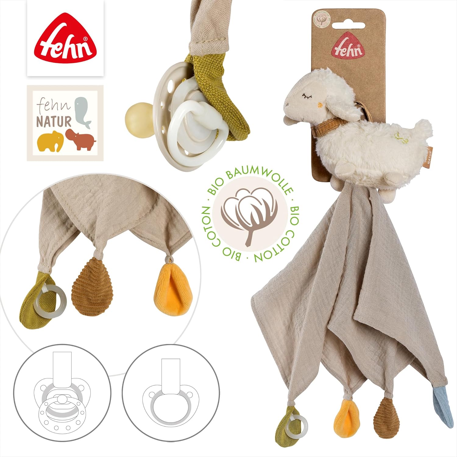 Fehn Schmusetuch Schaf Natur – Spielkamerad & Stofftier-Schnuffeltuch mit Bio-Baumwolle aus biologis