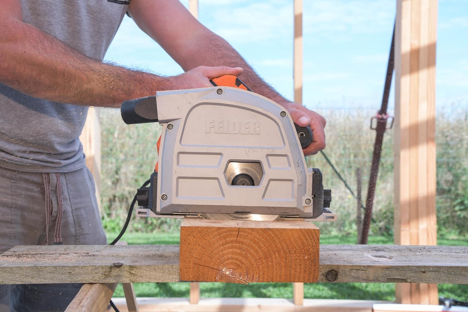 - Ein sicheres Produkt: Die Tauchsäge verfügt über ein System, das das Blatt standardmässig sicher in den Sägekörper zurückzieht, im Gegensatz zu einer herkömmlichen Kreissäge, bei der das Blatt immer frei liegt