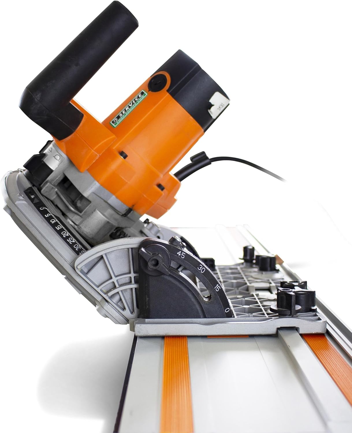 - Für präzises Arbeiten: Nutzen Sie diese Säge für perfekt gerade Schnitte mit Hilfe einer Schiene, die mit Anti-Rutsch-Pads und einem Splitterschutzstreifen ausgestattet ist. Sein Sanftanlauf verhindert Erschütterungen, um professionelles Arbeiten zu