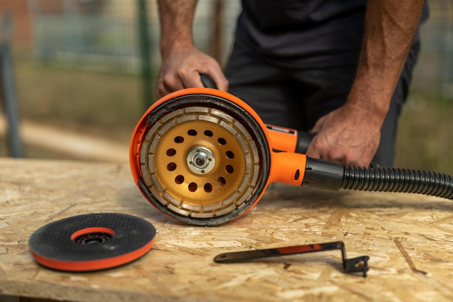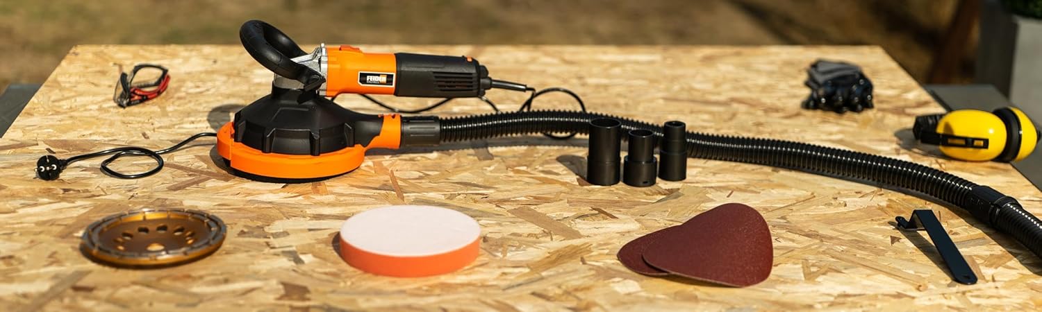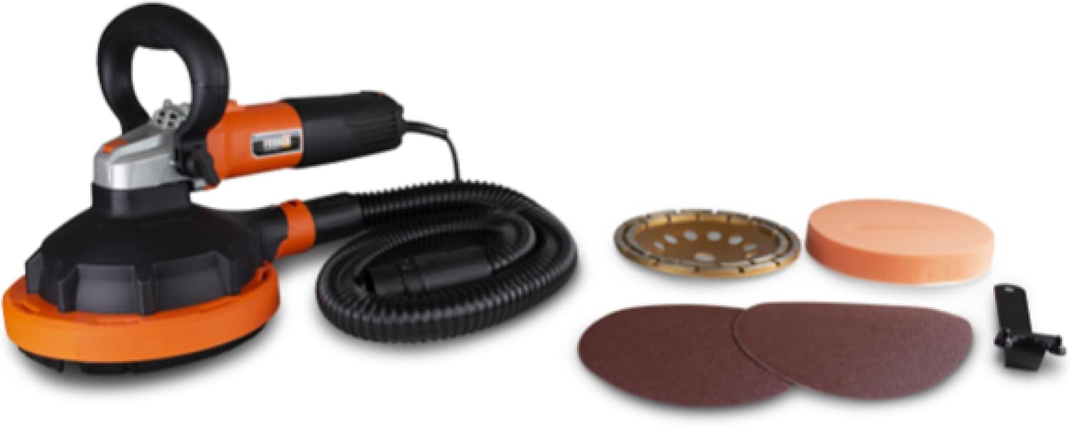 - Viele Vorteile für Ihren Komfort: Der Multifunktionsschleifer kommt mit 2 x 180mm Schleifmittel für Holz und Putz, 1 x 180mm Schaumstoffpad zum Polieren, 1 x 180mm Scheibe zum Schleifen von Beton und Stein. Das Werkzeug wird mit genügend Zubehör