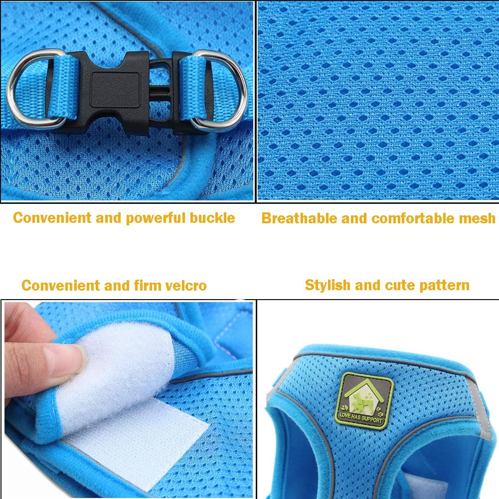 - 🐕Soft & Comfortable - Das Hundegeschirr besteht aus Mesh-Material, das vordere Material ist atmungsaktiv und bequem und der Hund ist nicht stickig. Der umgekehrte Stoff ist zart und weich, und die Webfäden sind dicht und kleben nicht an Hundehaaren.