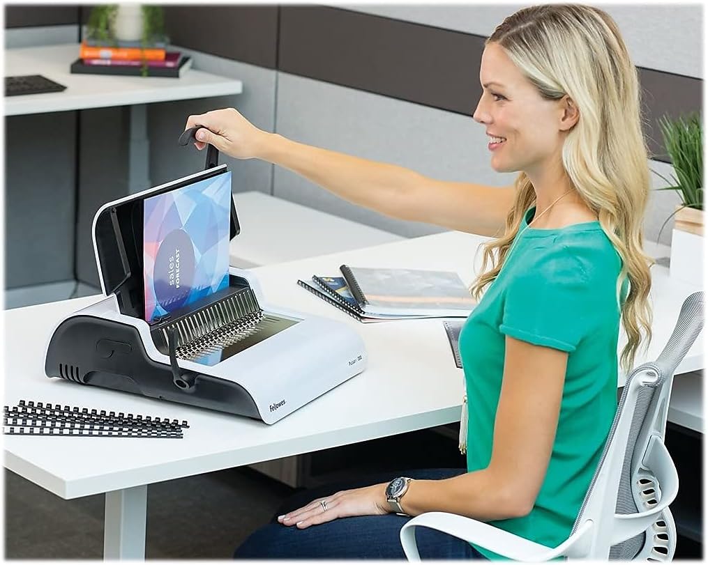 - Bindet bis zu 300 Blatt mit einem 3,8 cm grossen Kamm
