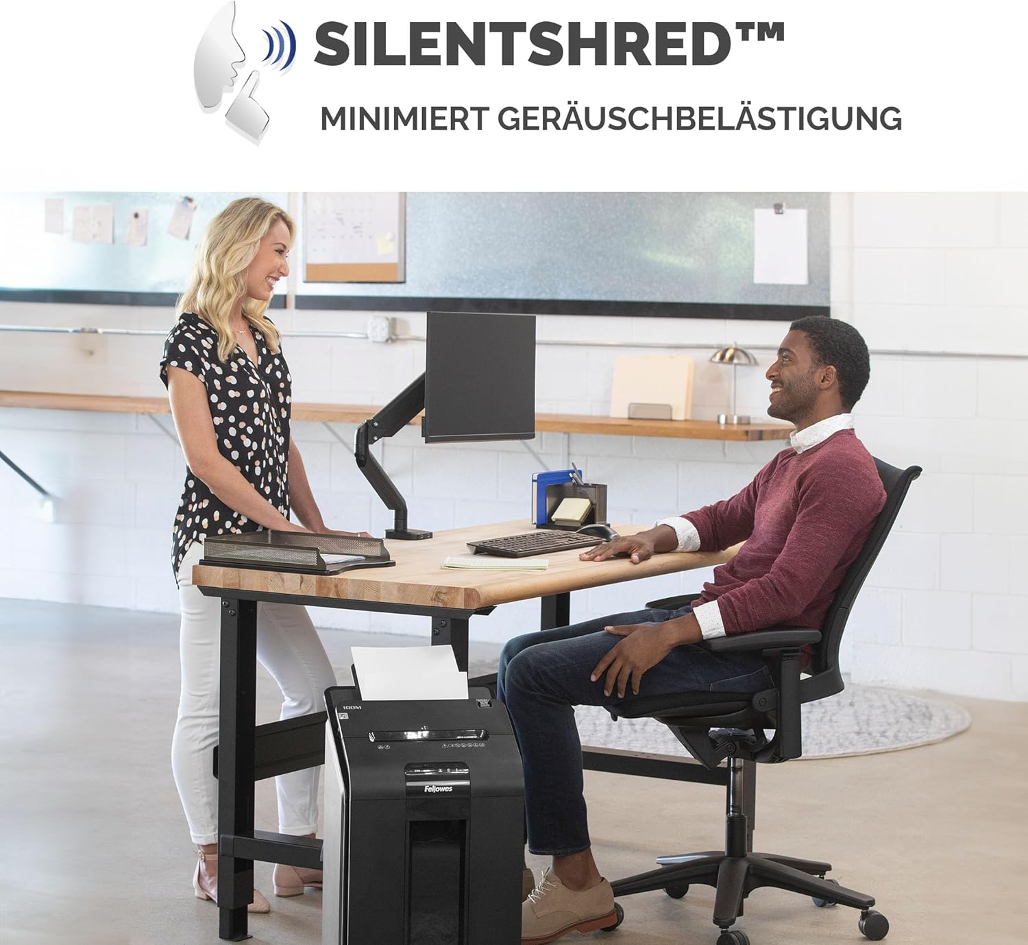 - PROBLEMFREI ARBETEN - Für einen sicheren und leisen Betrieb verfügt der Fellowes 100M über die SilentShred Technologie, einen automatischen Rücklauf bei Papierstau sowie einen SleepModus für Energieersparnis.