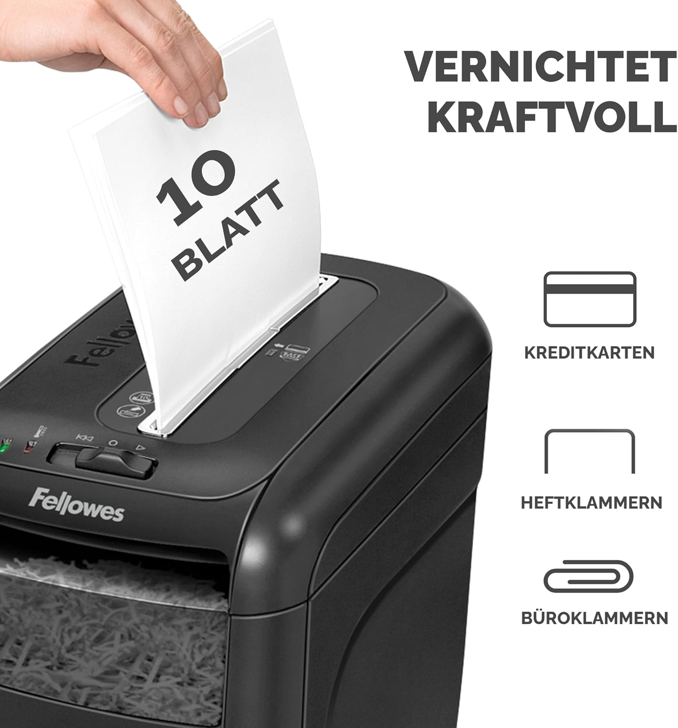 - Der Fellowes Papierschredder 60Cs für die Nutzung Zuhause und im Home Office vernichtet 10 Blatt gleichzeitig in 4 x 40 mm Partikel (Sicherheitsstufe P-4)
