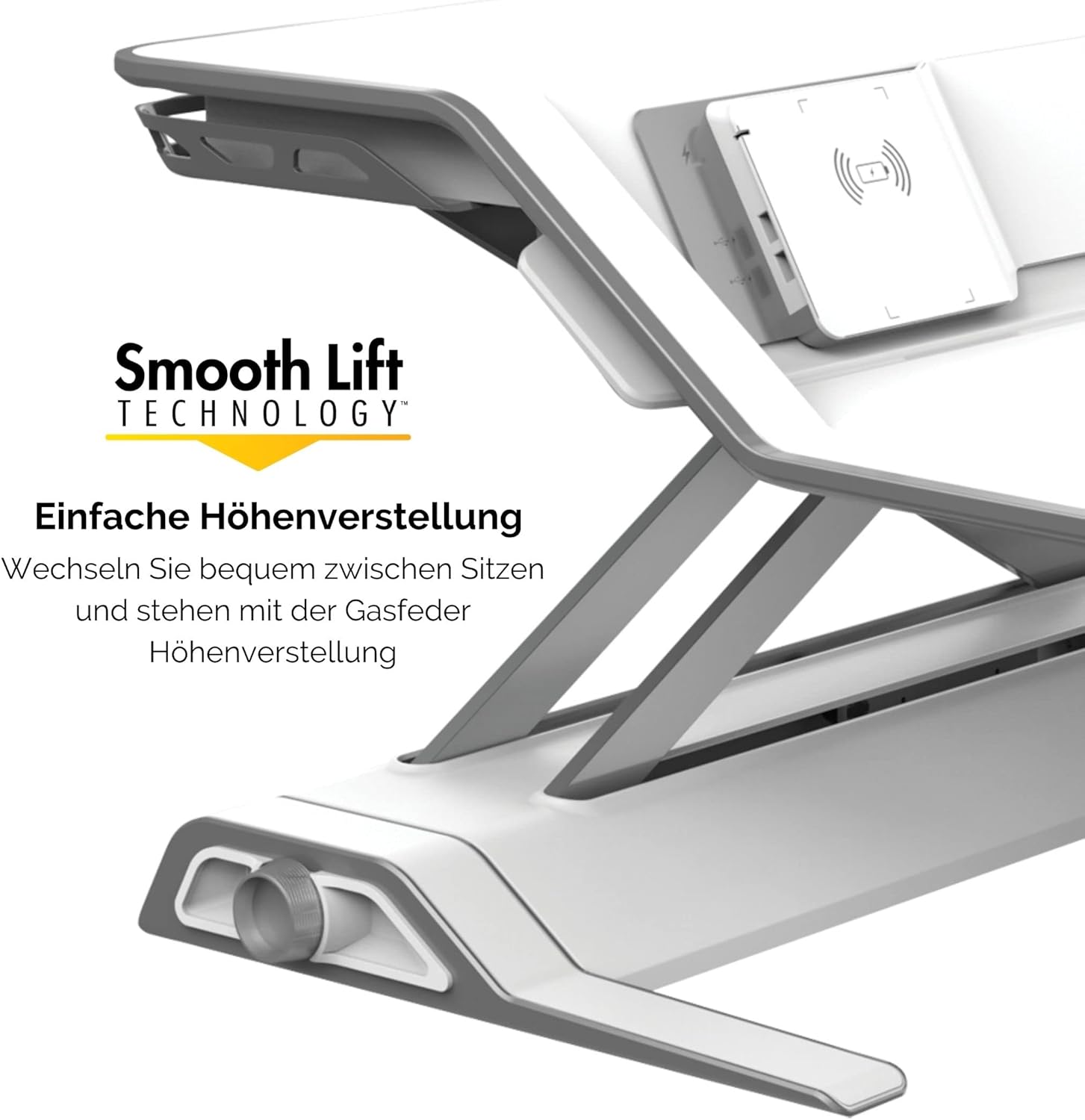 - Mit dem höhenverstellbarem ergonomischen Lotus DX Schreibtischaufsatz mit integrierter drahtloser Ladestation und USB Anschluss wird Ihr Arbeitsplatz nun noch dynamischer und produktiver