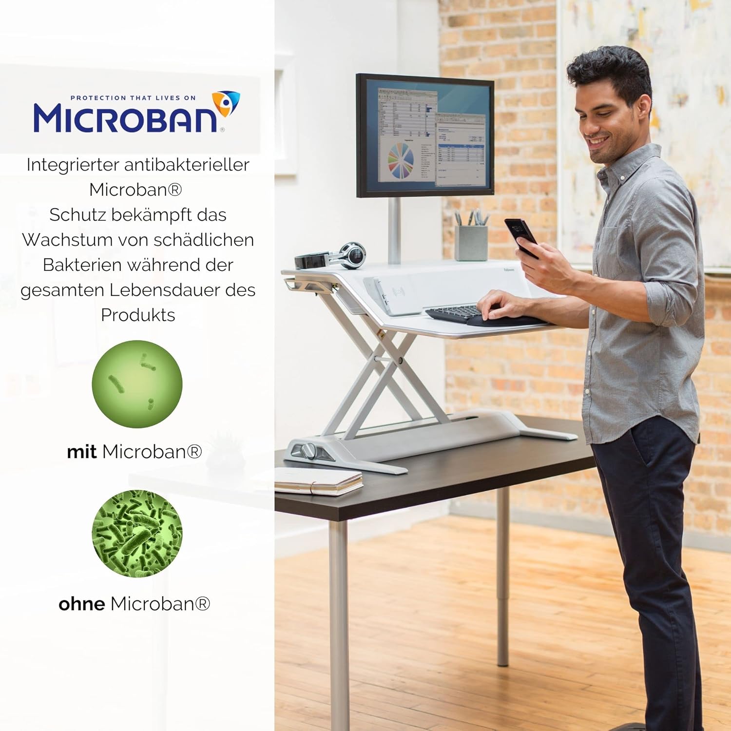 - Der eingearbeitete antimikrobielle Microban Schutz hemmt die Ansammlung schädlicher Bakterien über die gesamte Lebensdauer Ihres Fellowes Stehpults