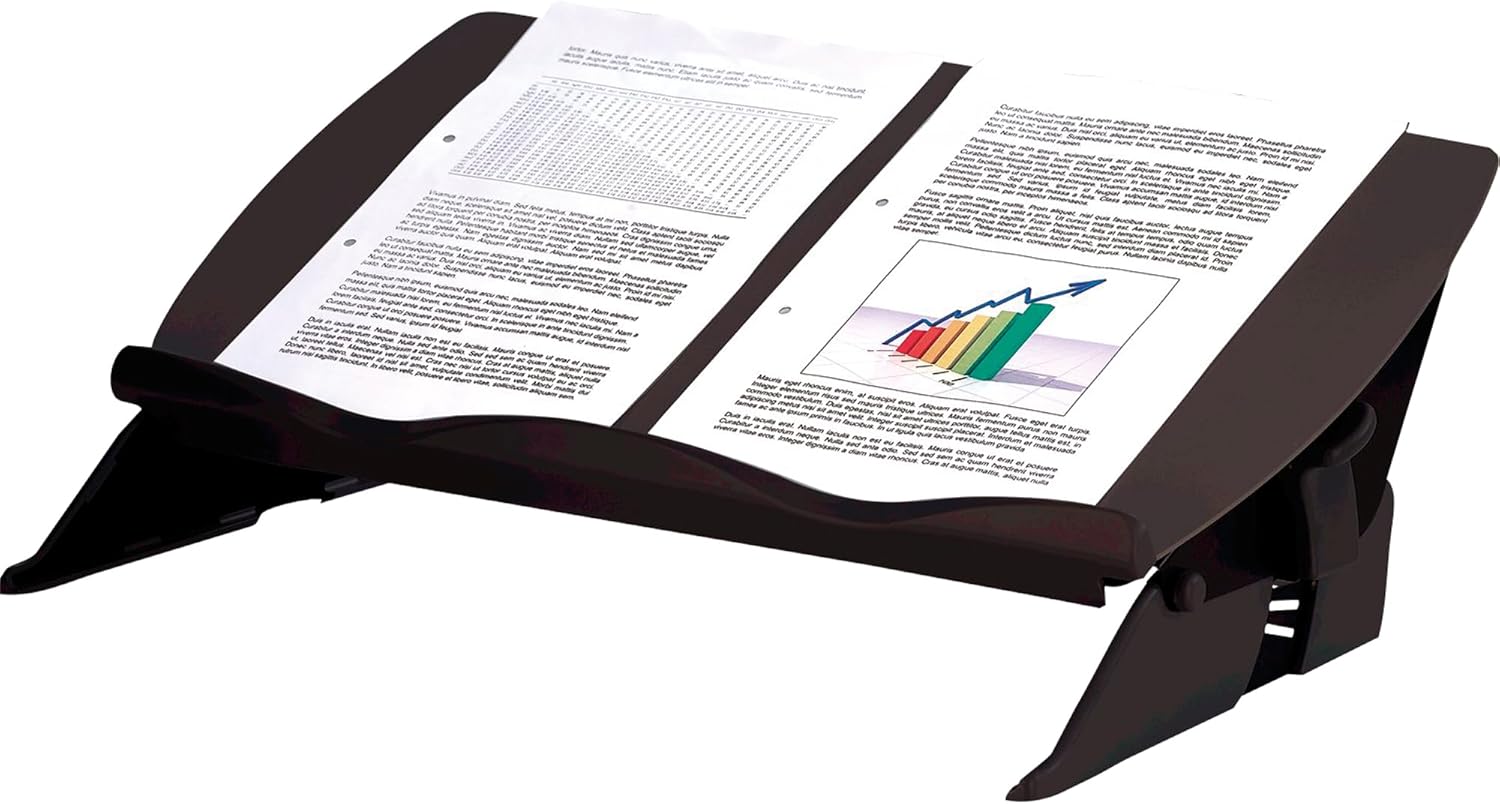 • Die vordere Leiste des Dokumententrägers stellt sicher, dass selbst dickere Bücher oder Kataloge bis 5 kg Gewicht sicher gehalten werden und nicht abrutschen