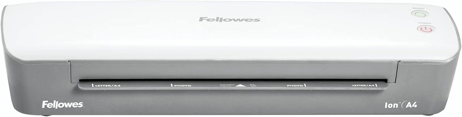• KEIN FOLIENSTAU: Das Laminiergerät Ion A4 von Fellowes laminiert zuverlässig und staufrei in Kombination mit Fellowes Markenlaminierfolien und verfügt über einen Hebel zur Neuausrichtung schief zugeführter Folien