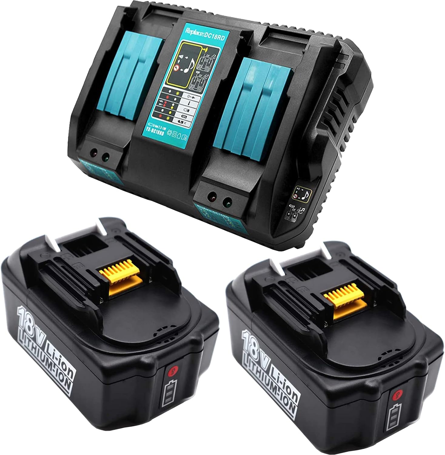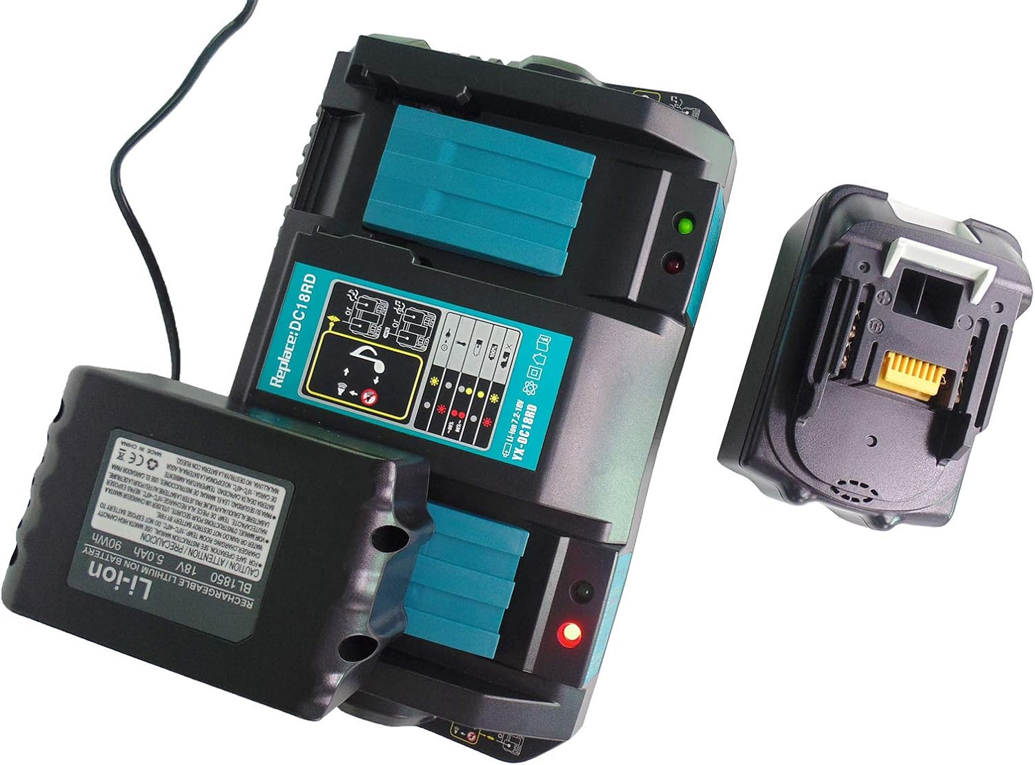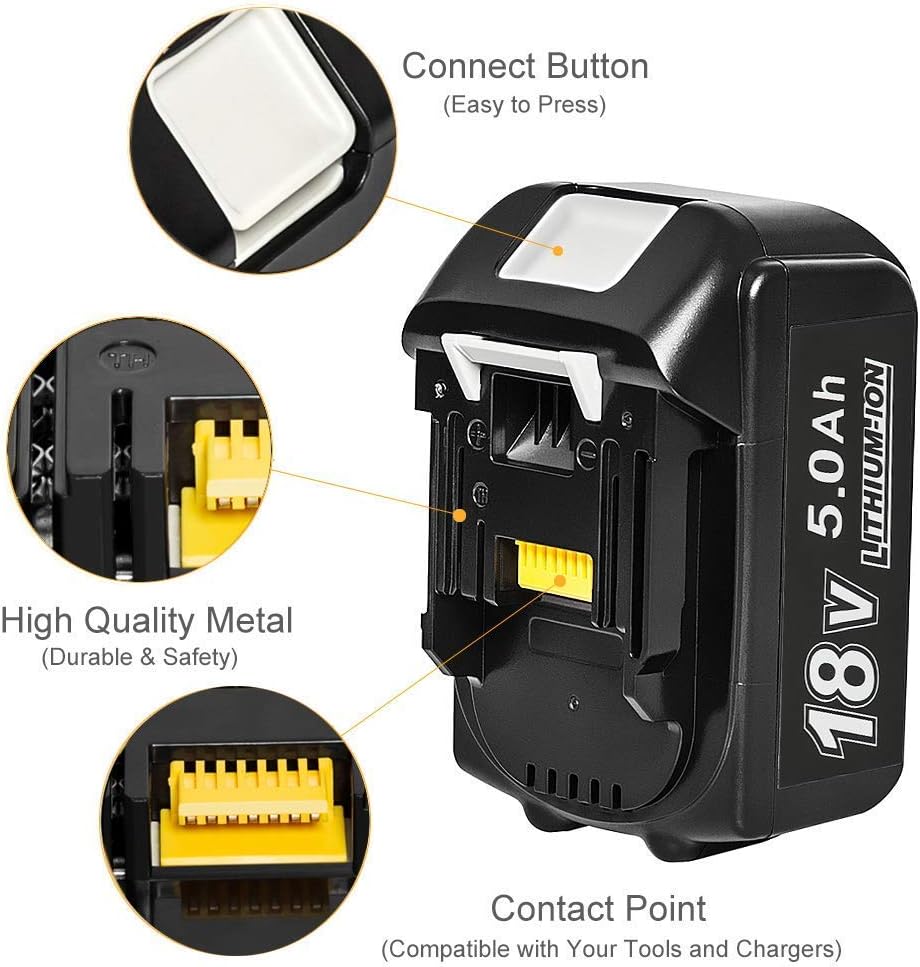 - 【Produktdetails】Mit 2 Stück BL1850 18V 5000mAh mit LED ,Akku Typ: Lithium-ion | Spannung: 18V | Kapazität: 5000mAh / 5.0Ah | Wattage: 90W | BL1850B Akku für Makita. Kompatibel mit Makita 18V Batterie BL1850B, BL1850, BL1860B, BL1860, BL1840B,