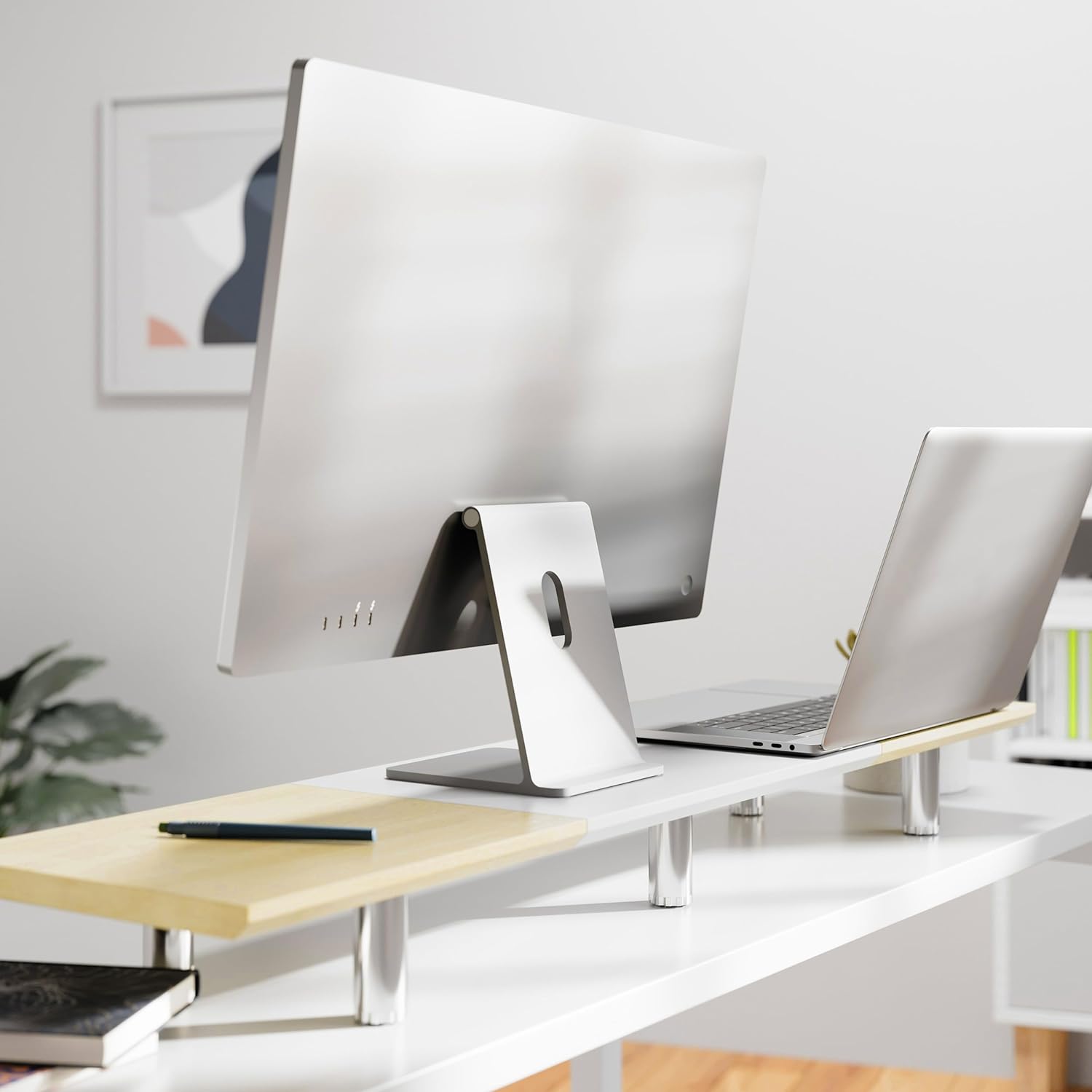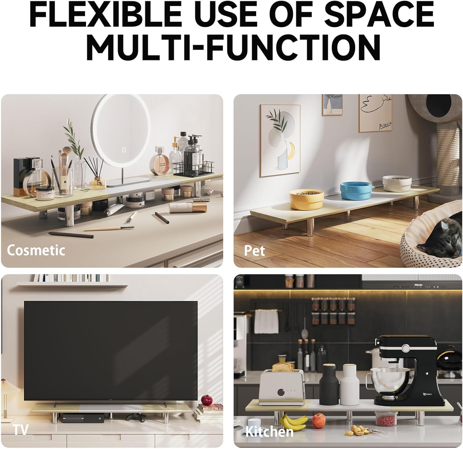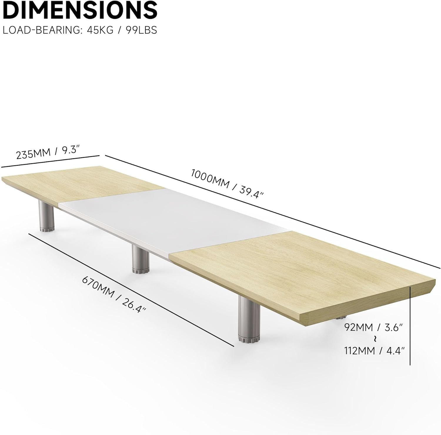 - 【Längere Grösse mit mehr Platz】Size: 100x23.5x(9.2-11.2)cm. Mit einer Breite von 100 cm ist dieser Laptop-Riser gross genug, um zwei Monitore zu unterstützen. Abhängig von Ihrem Setup haben Sie sogar Platz, um einen Lautsprecher oder ein anderes