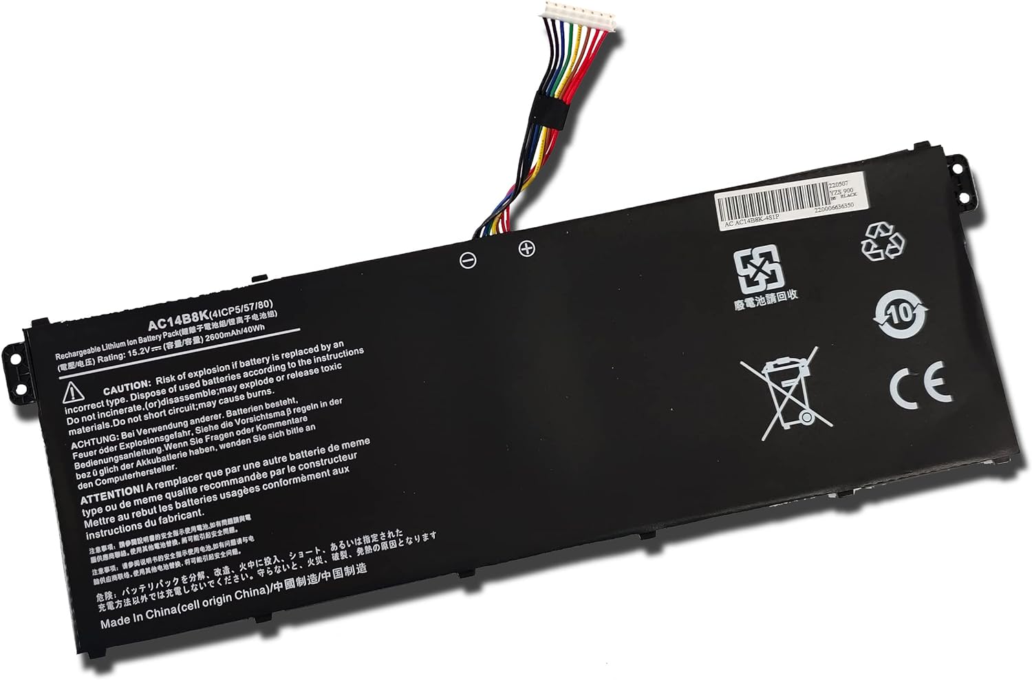 • 【PRODUKTSPEZIFIKATIONEN】: Dieser AC14B8K Akku hat 4-Zellen und eine Kapazität von 40Wh(2600mAh), eine anwendbare Spannung von 15.2V und kann mehr als 500-mal aufgeladen werden.