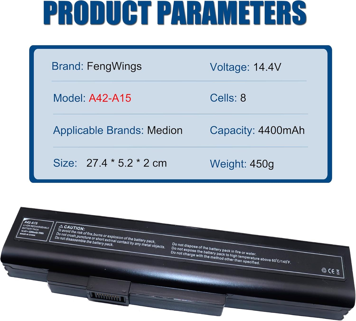 - [PRODUKTSPEZIFIKATIONEN]: Dieser A42-A15 Akku ( Passen Sie nur mit 14,4V / 14,8V, passen Sie nicht mit 10,8V / 11,1V ), hat 8-Zellen und eine Kapazität von 4400mAh, eine anwendbare Spannung von 14.4V und kann mehr als 500-mal aufgeladen werden.