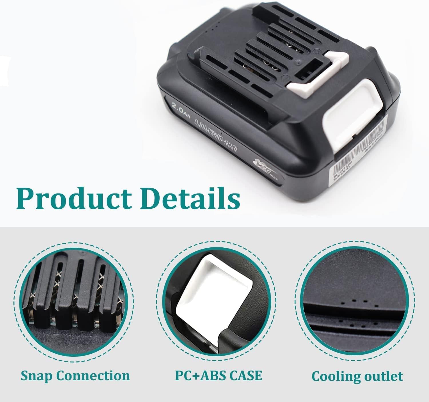 • [PRODUKTSPEZIFIKATIONEN]: Dieser BL1021B ( BL1016 ) Akku Kompatibel mit Akku Makita 12V, hat eine Kapazität von 2000Ah (2ah) und die anwendbare Spannung ist 12V. Dank des hervorragenden Li-ion-Materials mit Ladegerät lässt sich dieser wiederaufladbare