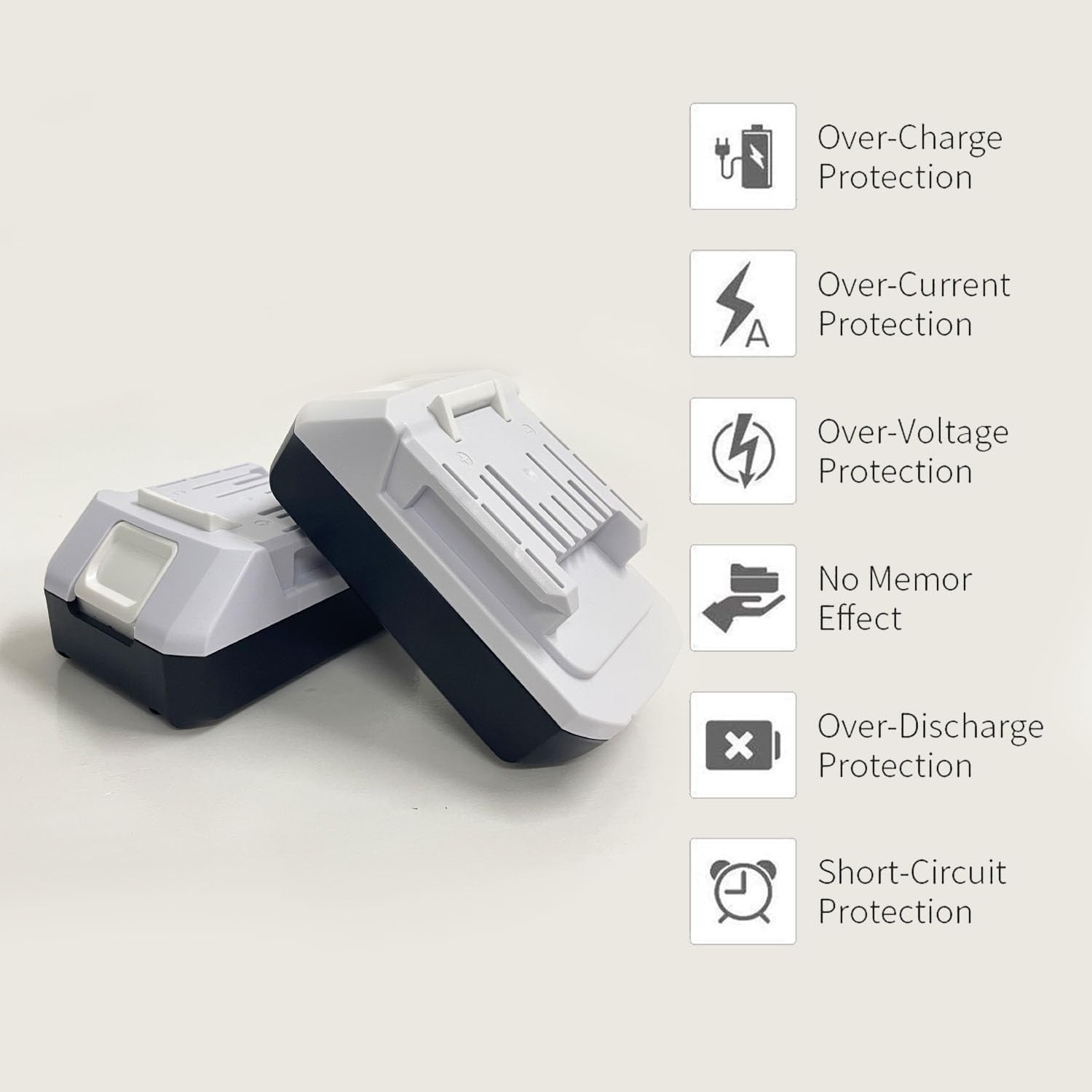 - Volt: 18V Capacity: 2000mAh Farbe: Weiss + schwarz, Menge: 2PCS