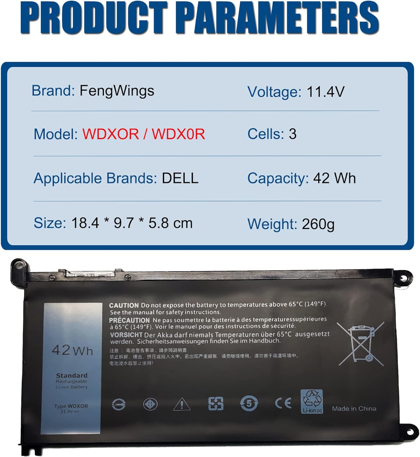 - [PRODUKTSPEZIFIKATIONEN]: Dieser WDX0R Akku hat 4-Zellen und eine Kapazität von 42Wh, eine anwendbare Spannung von 11.4V und kann mehr als 500-mal aufgeladen werden.