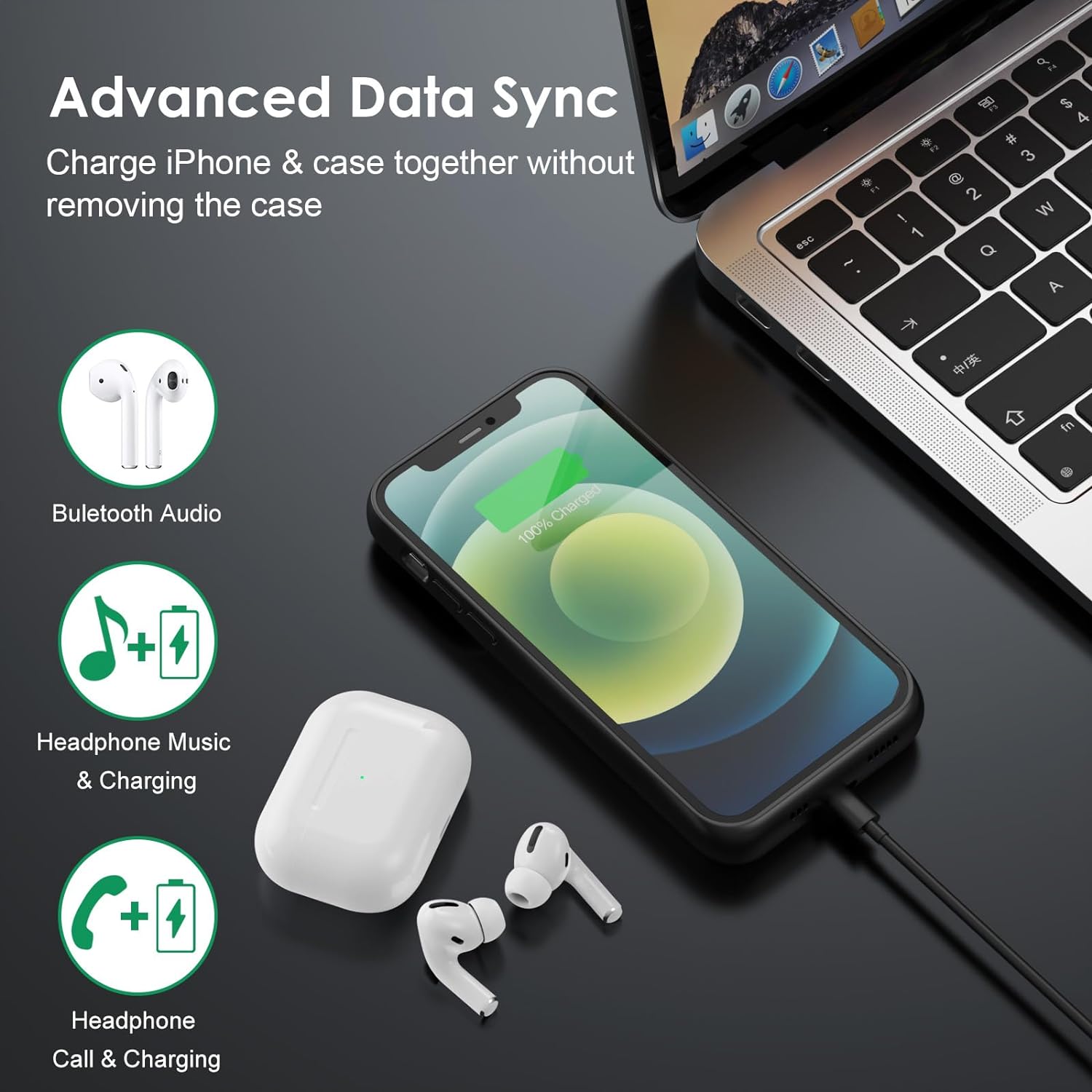 - 【ERWEITERTE SYNC-THROUGH-TECHNOLOGIE】Sie können gleichzeitig Ihr Handy-Ladegerät und das iPhone 12/12 Pro aufladen. Sie können Ihr iPhone 12/12 Pro mit Ihrem Mac-Buch, PC oder Laptop synchronisieren, ohne die Akkuhülle abzunehmen. Sie können