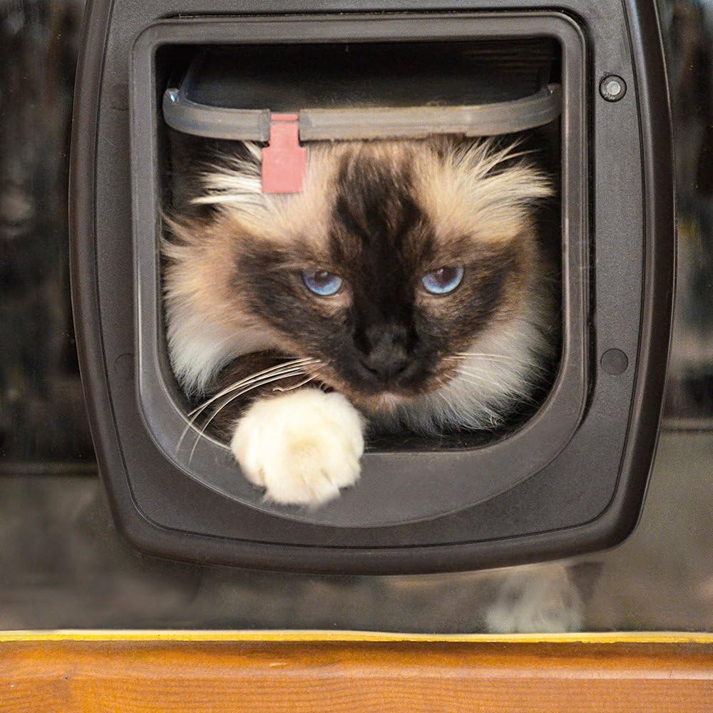 - Katzenklappe aus Kunststoff mit Mikrochip-Erkennungssystem, erkennt den implantierten ISO11784-Mikrochip der Katze und entriegelt die Tür bei Annäherung
