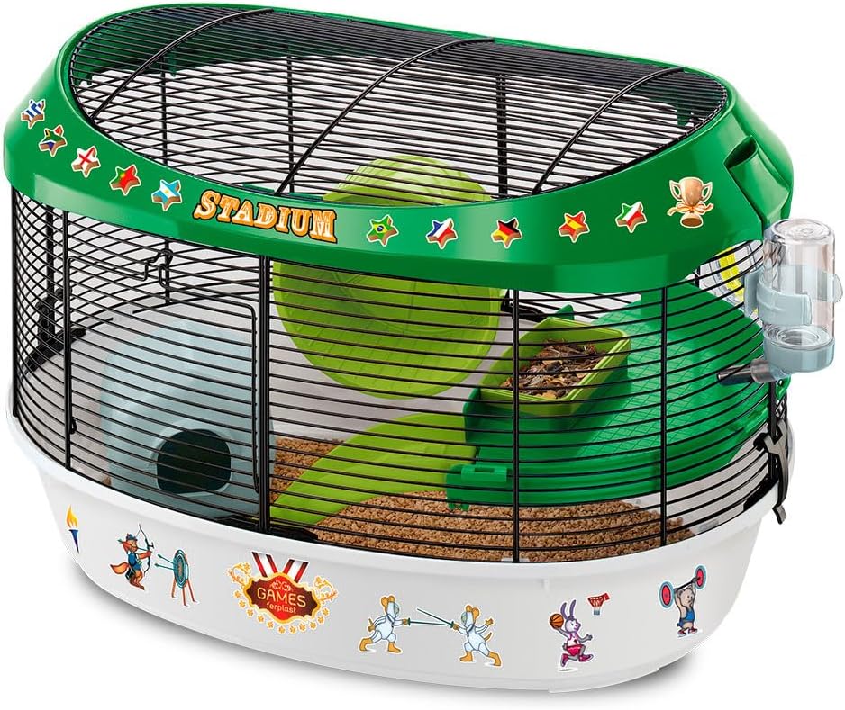 - Stadion wird sehr geschätzt, weil: Aus hervorragenden Materialien hergestellt. Oberer Rahmen und Boden sind aus thermoplastischem Harz und mit schönen Bildern verziert, während der Käfig aus lackiertem Metallgitter besteht Geräumiger Innenraum voller