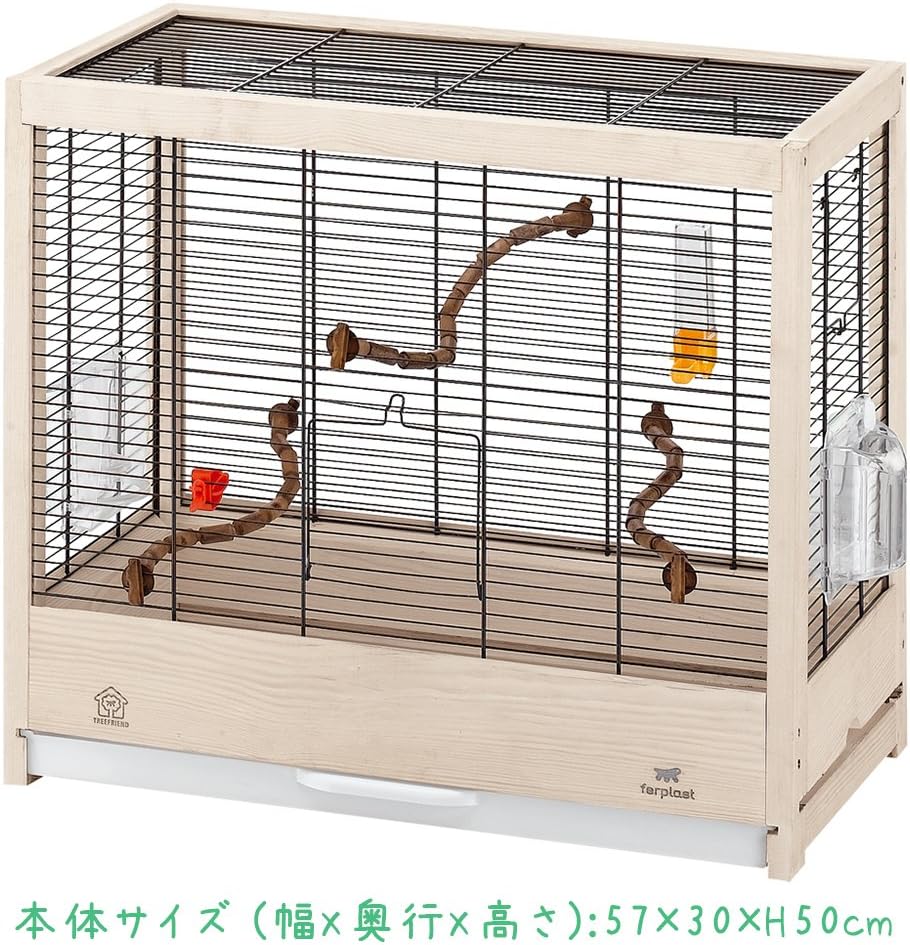 • Grosser Boden mit herausnehmbarer Kunststoffschublade für einfache Reinigung; Gitter zum Schutz der Pfoten der Vögel.
