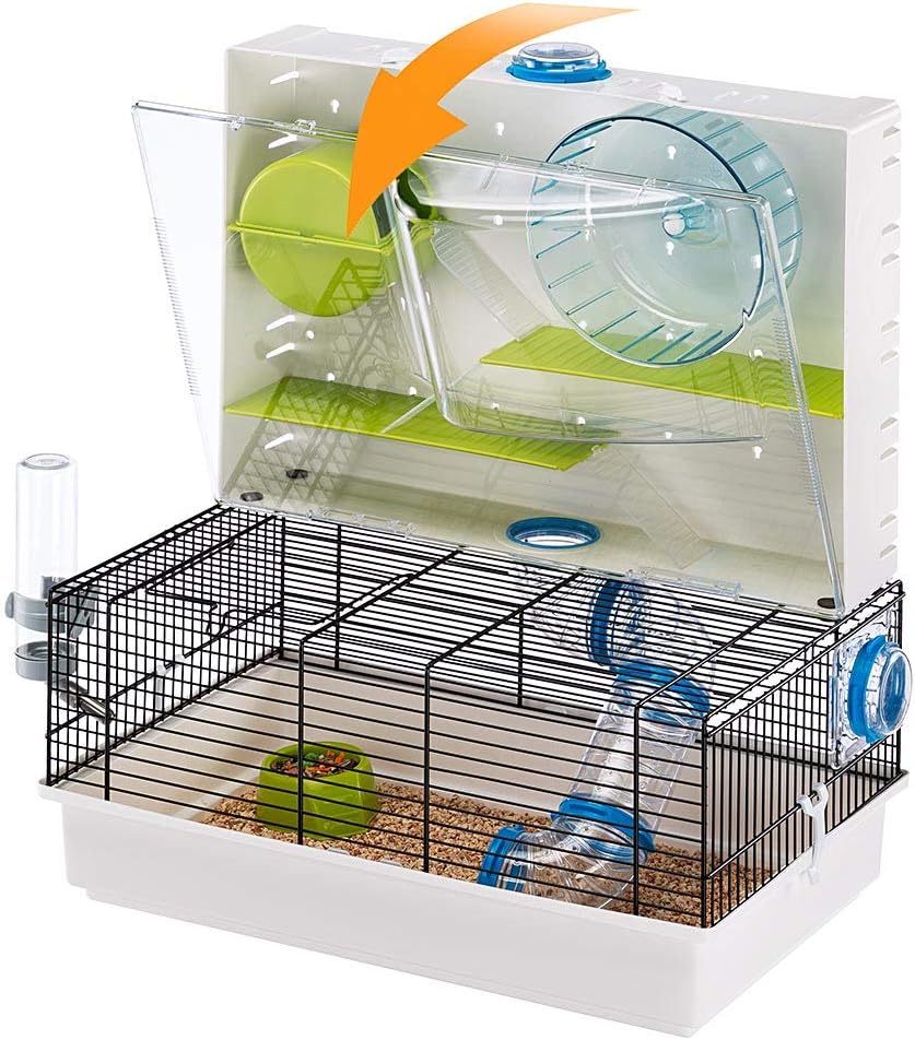 - Komplett mit allem notwendigen Zubehör: Futternapf, Wasserflasche, bequemes Nest zum Ausruhen, Regale, Leitern und Laufrad, Röhrenset zum Spielen