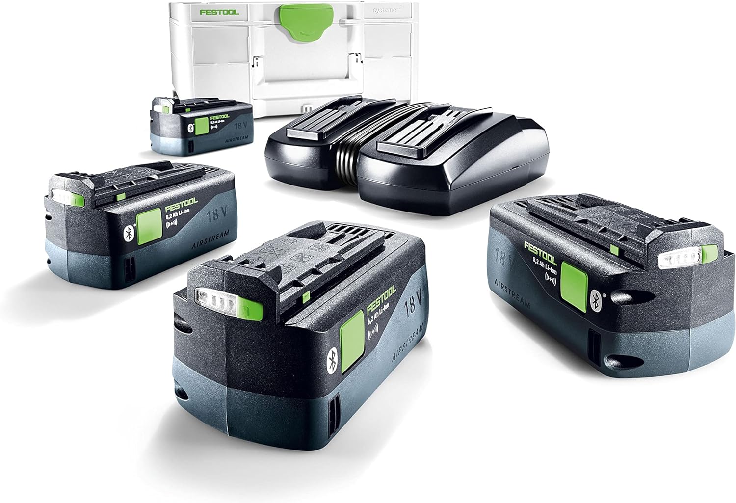 - Lieferumfang: Festool Energie-Set SYS 18V 4x5,2/TCL 6 DUO, 4 x Akkupack BP 18 Li 5,2 ASI, Schnellladegerät TCL 6 DUO, Systainer SYS3 M 187