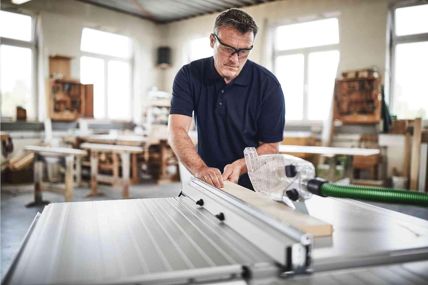 - Mit umsetzbarem Anschlagprofil für präzise und sichere Längsschnitte