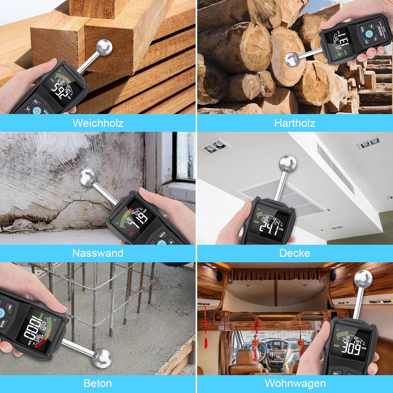 - 【Breites Anwendungsspektrum】Es kann verwendet werden, um alle Arten von Mauerwerk, Putz, Holz, Beton, Zement, Häuser, Wohnmobile und Wohnwagen zu messen, so dass Sie auch an schwer zugänglichen Stellen messen können. Es ist ein hervorragendes Hilfsmittel für Hausbesitzer, Bauherren, Zimmerleute und Gärtner, um undichte Stellen und Probleme mit dem Eindringen von Wasser zu erkennen. Hinweis: Metallische Materialien und raue Oberflächen können nicht gemessen werden.