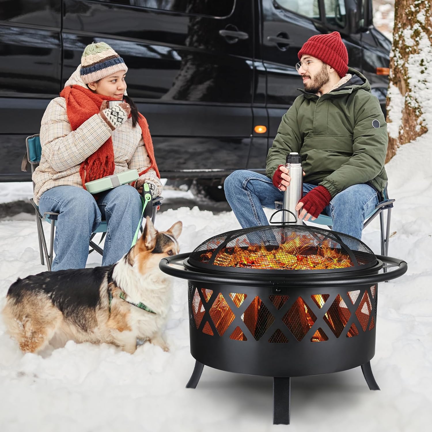 - 🔥Multifunktional: Die Feuerschale mit Grillrost zeichnet sich durch grosse Kapazität und Tragbarkeit aus und kann gleichzeitig die Funktion Grillen und Heizen erfüllen, ideal für Grillpartys in Gärten und Stränden eignet.