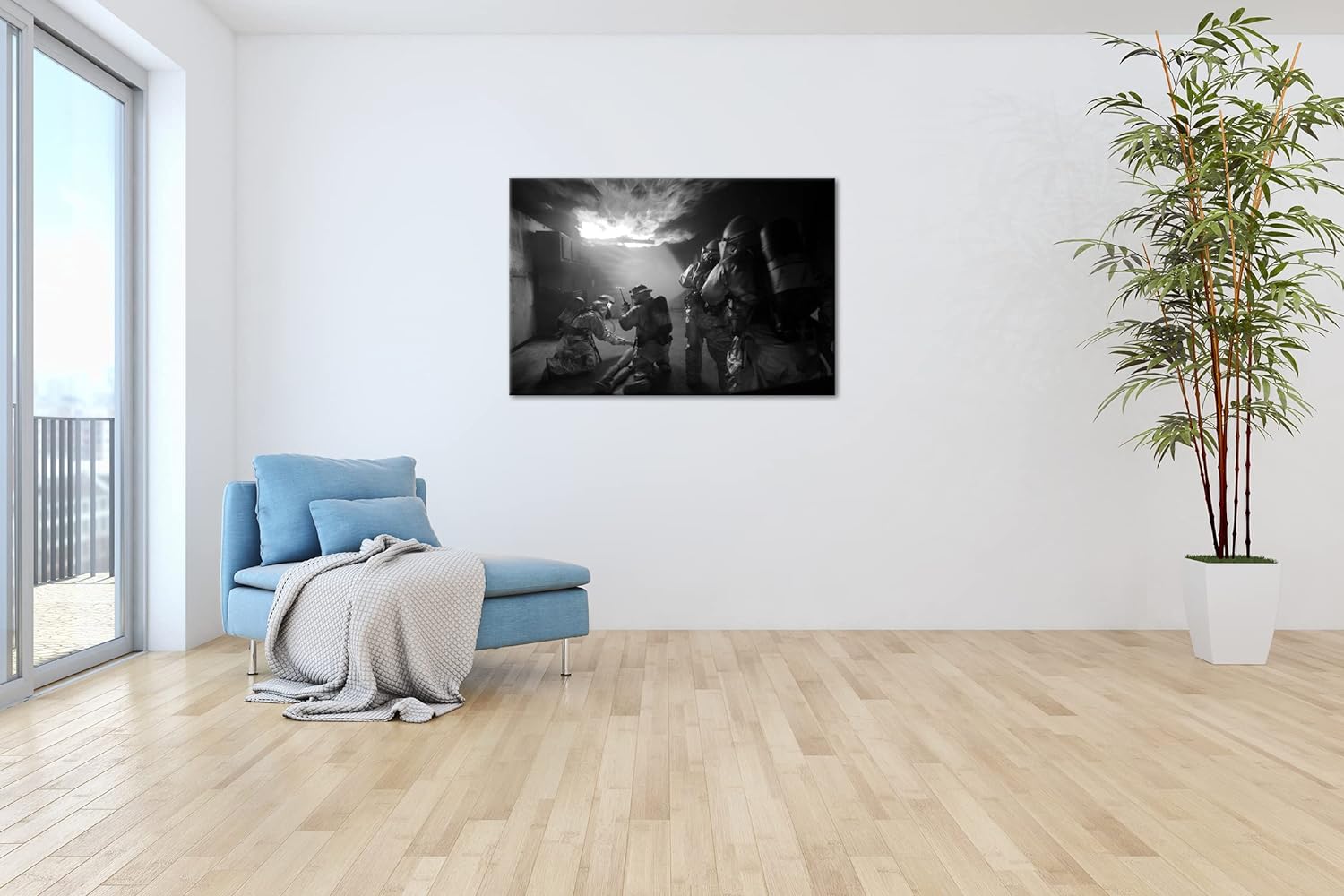 deyoli Feuerwehr Einsatz Format: 100x70 Effekt: Schwarz&Weiss als Leinwandbild, Motiv fertig gerahmt