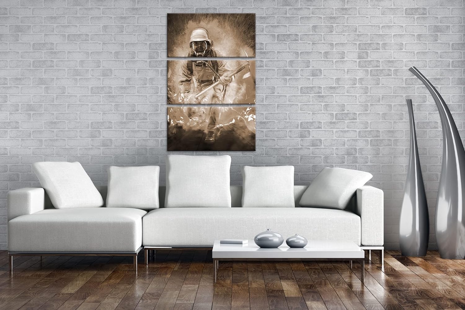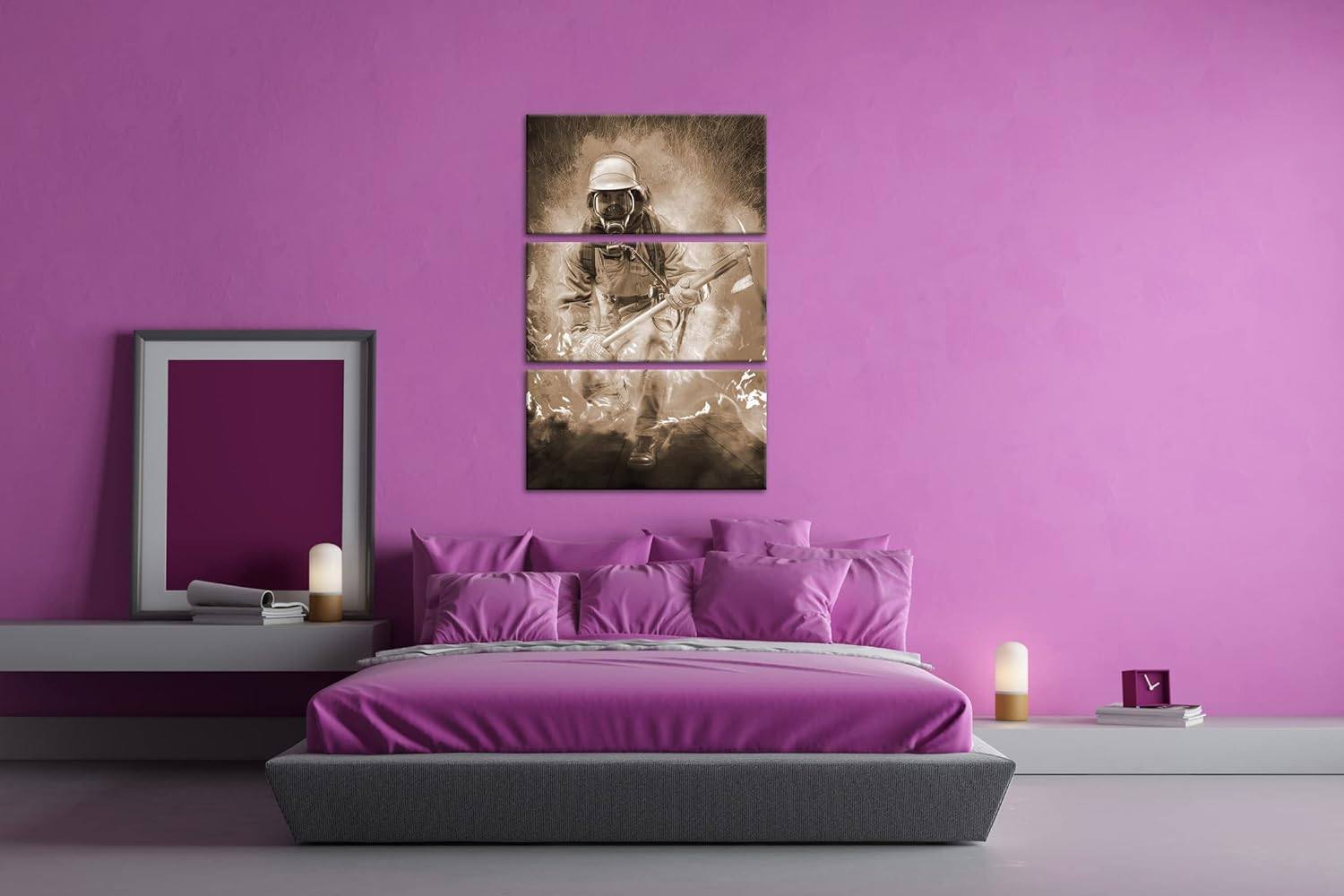 deyoli Feuerwehrmann im Einsatz Format: 3Teilig Effekt: Sepia als Leinwandbild, Motiv fertig gerahmt