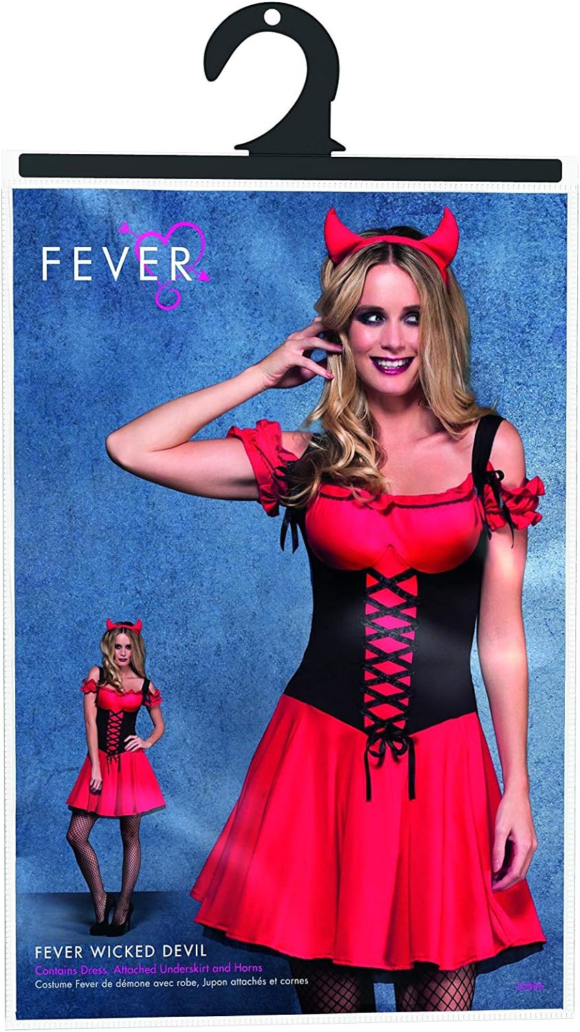 - Lieferumfang: 1 Fever Damen Sündhafter Teufel Kostüm, Kleid mit Unterrock und Hörnern, Beinhaltet nicht: Dreizack, Halskette, Schuhe, Strumpfhose und Armband, Farbe: Rot, Grösse: S
