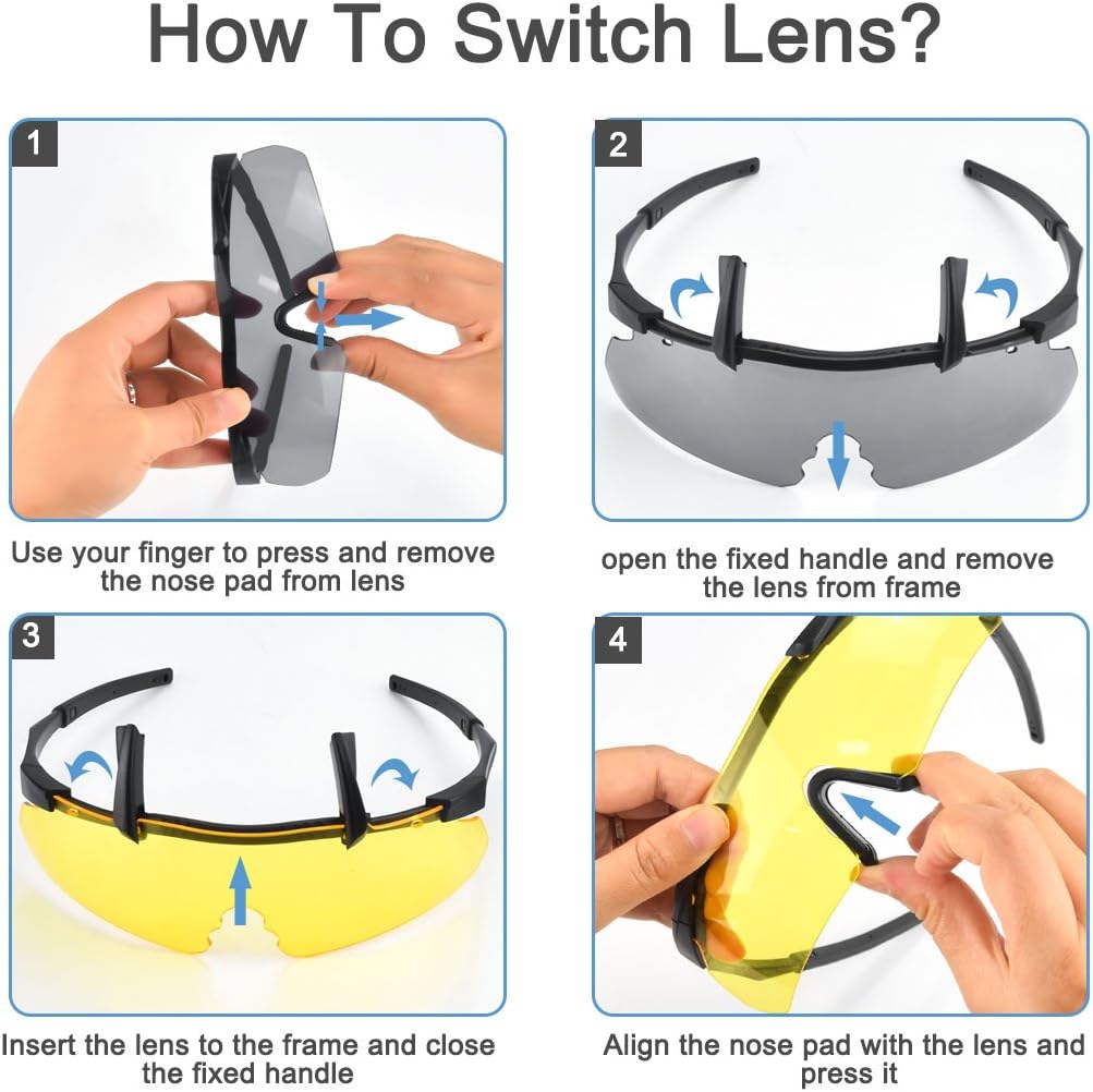 - 3 Farben Linse: Gelb, Rauch und Transparent. Die Linsenoptionen machen sie ideal für jede Art von Licht in den meisten Fällen, austauschbare Linsen sind leicht zu ändern