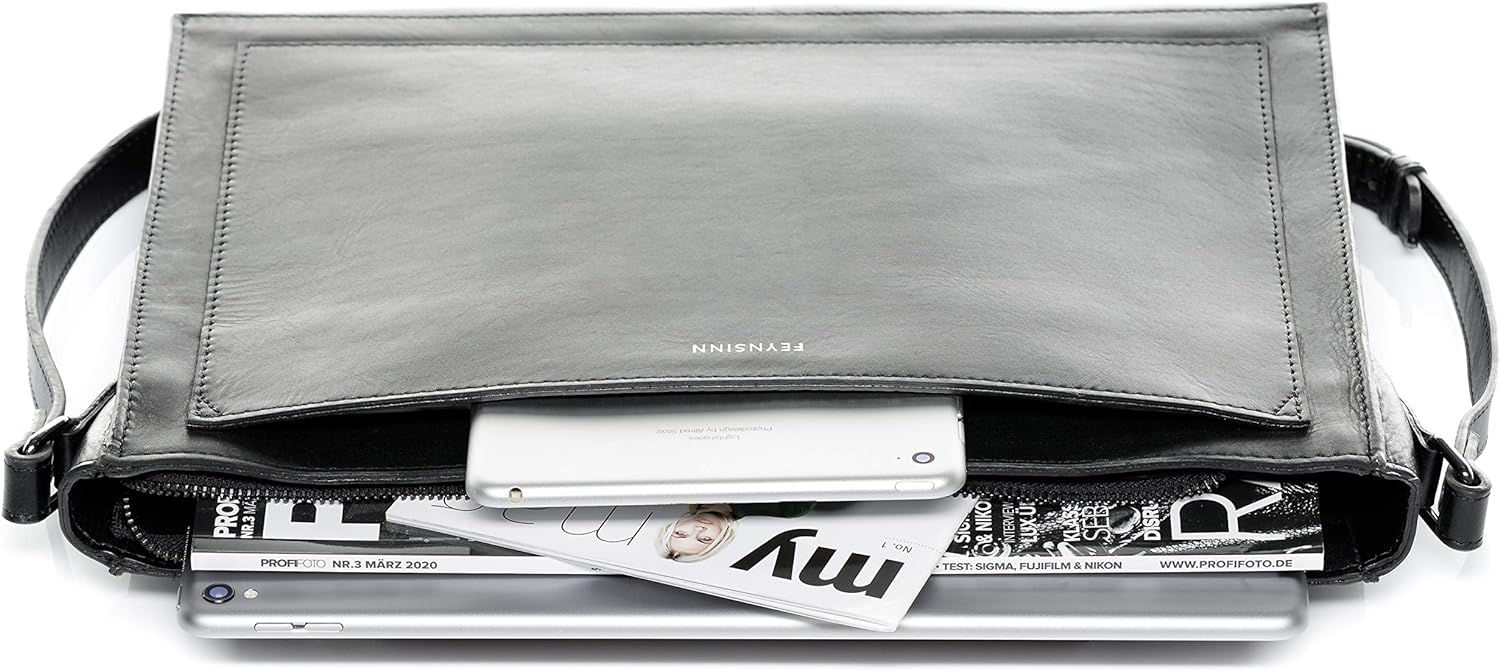 PRODUKTBESCHREIBUNGEN Original FEYNSINN BERLIN handgefertigte Schultertasche aus echtem, hochwertigem Leder. Die Umhängetasche ist ein echtes Allroundtalent und kann dank ihres langen, verstellbaren Schultergurtes bequem cross-body getragen werden. Als Klassiker ist die Schultertasche ein echtes Allroundtalent, bequem zu tragen, die Hände bleiben frei - mit jeder Menge Stauraum - die perfekte Begleitung DETAILS: Aussenmasse: 35 x 25 x 4 cm verstellbarer Schultergurt Gewicht: 500 Gramm Metal: hochwertig, nickelfrei inkl. Dustbag der Marke ECHTES LEDER & HANDARBEIT Dieser Artikel aus echtem Leder wurde vollständig handgearbeitet. Leder ist ein wertvolles und besonders langlebiges Naturprodukt. Die Einzigartigkeit von Leder verleiht diesem Artikel seinen individuellen Charme. LIEFERUMFANG 1x: Schultertasche aus strapazierfähigem Leder inkl. Dustbag der Marke MARKENPRODUKT FEYNSINN Berlin - die Marke steht für urbanes Design und nachhaltige Materialien. Inspiriert von dem Leben als Urban Nomads hat FEYNSINN 2009 begonnen, eine urbane, minimalistische online-first Taschen und Reise-Marke zu launchen. Als erste Direct-to-Consumer Marke wurde FEYNSINN schnell zum Innovationstreiber der gesamten Branche. KUNDENSERVICE Wir lieben Leder und Taschen und sind überzeugt von jedem einzelnen unserer Produkte. Wir garantieren eine schnelle und unkomplizierte Bearbeitung/Lösung.