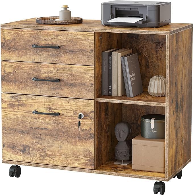 - - MULTIFUNKTIONAL & STYLISH: Dieser Aktenschrank mit offenem Stauraum, Aktenschubladen und Ablagefächern ist so konzipiert, dass er Büromaterial, Ordner und persönliche Gegenstände gut organisiert aufbewahrt. Er kann neben oder unter Ihrem