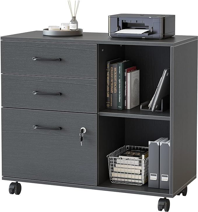 - - MULTIFUNKTIONAL & STYLISH: Dieser Aktenschrank mit offenem Stauraum, Aktenschubladen und Ablagefächern ist so konzipiert, dass er Büromaterial, Ordner und persönliche Gegenstände gut organisiert aufbewahrt. Er kann neben oder unter Ihrem